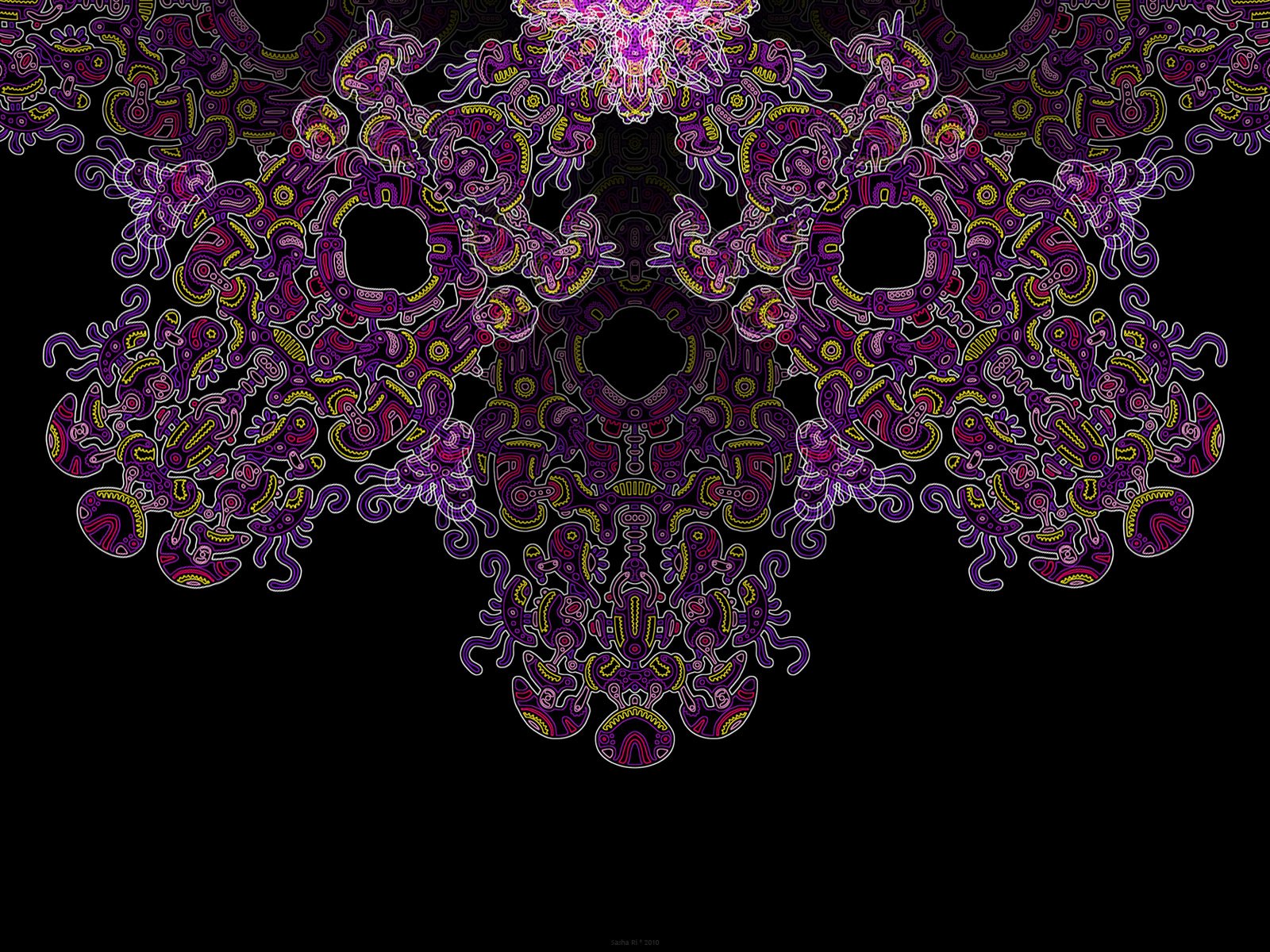 Mandala tonos púrpura sobre fondo negro