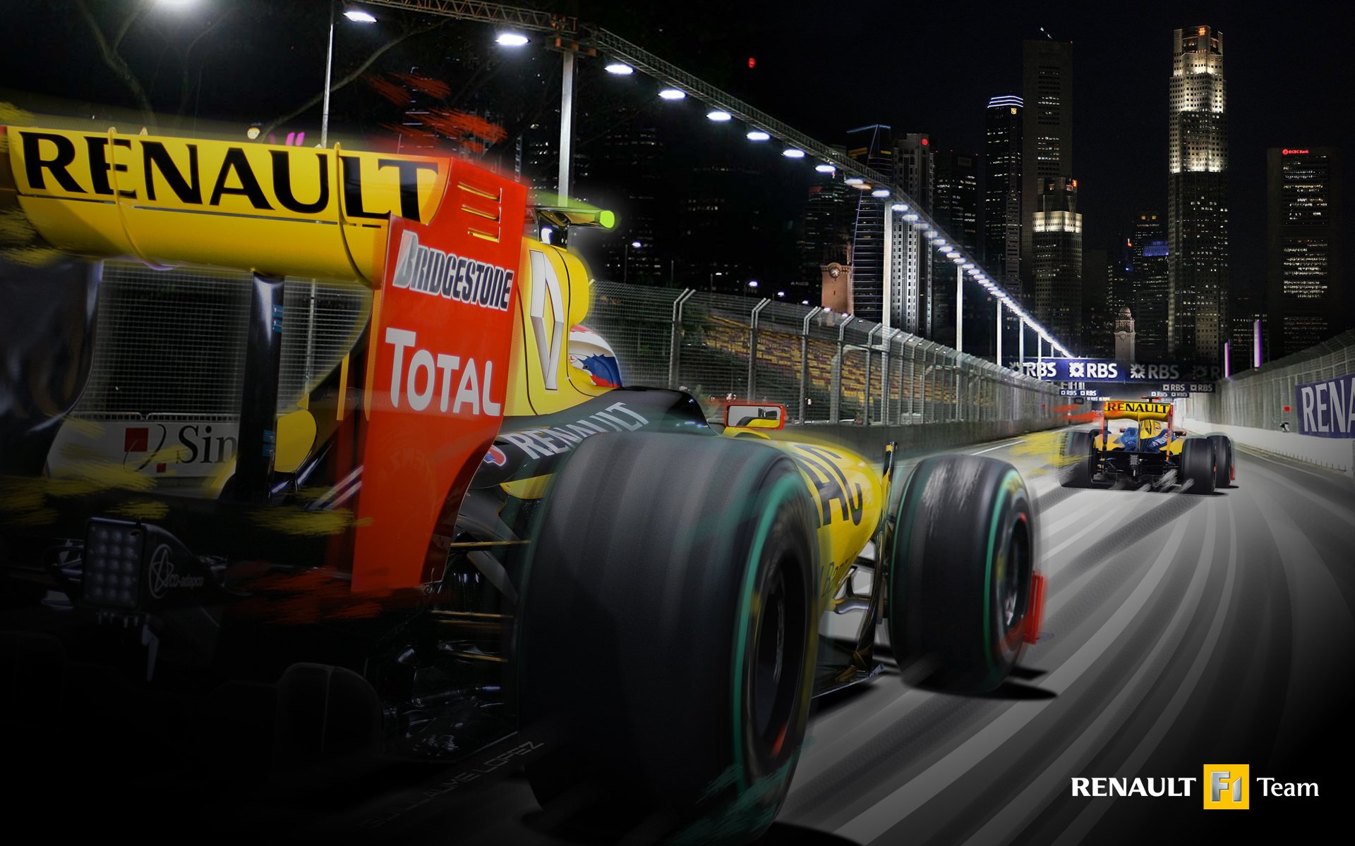Coches de carreras corriendo por la pista nocturnaCoches de carreras corriendo por la pista nocturna