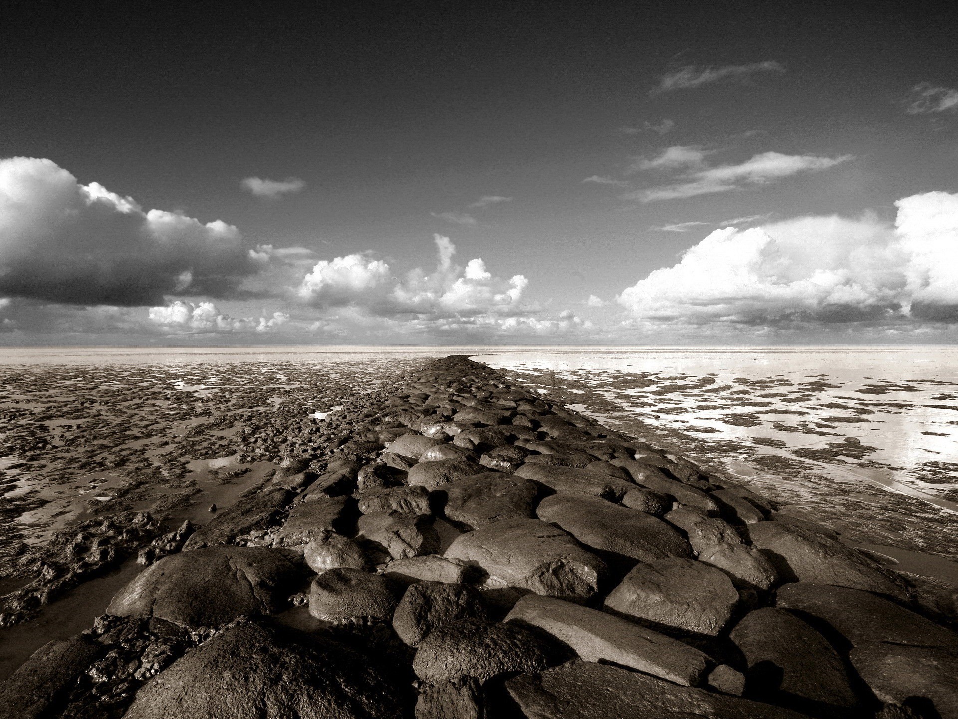 En el horizonte sólo un montón de piedras y sobre ellos las nubes grises