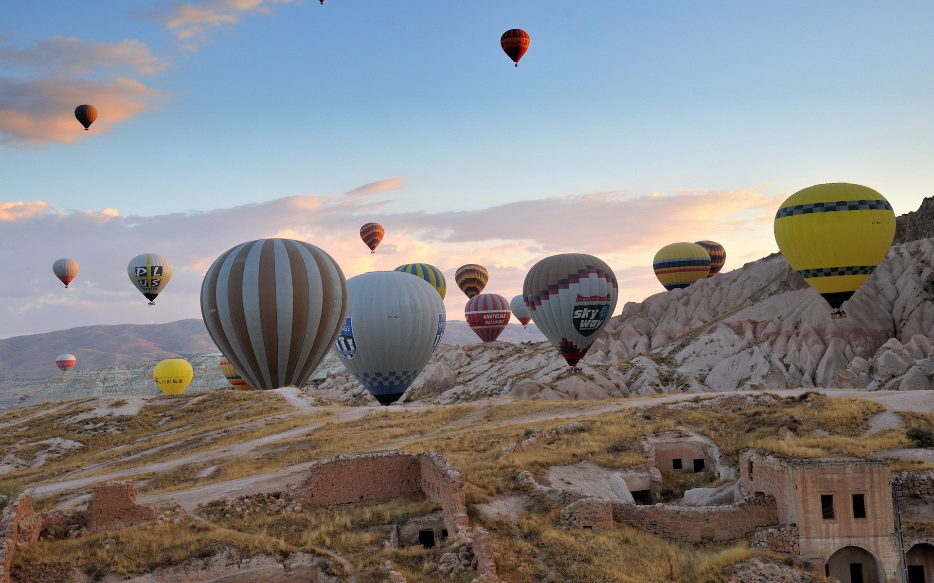 En algún lugar de las montañas hay un cielo azul cubierto de globosEn algún lugar de las montañas hay un cielo azul cubierto de globos