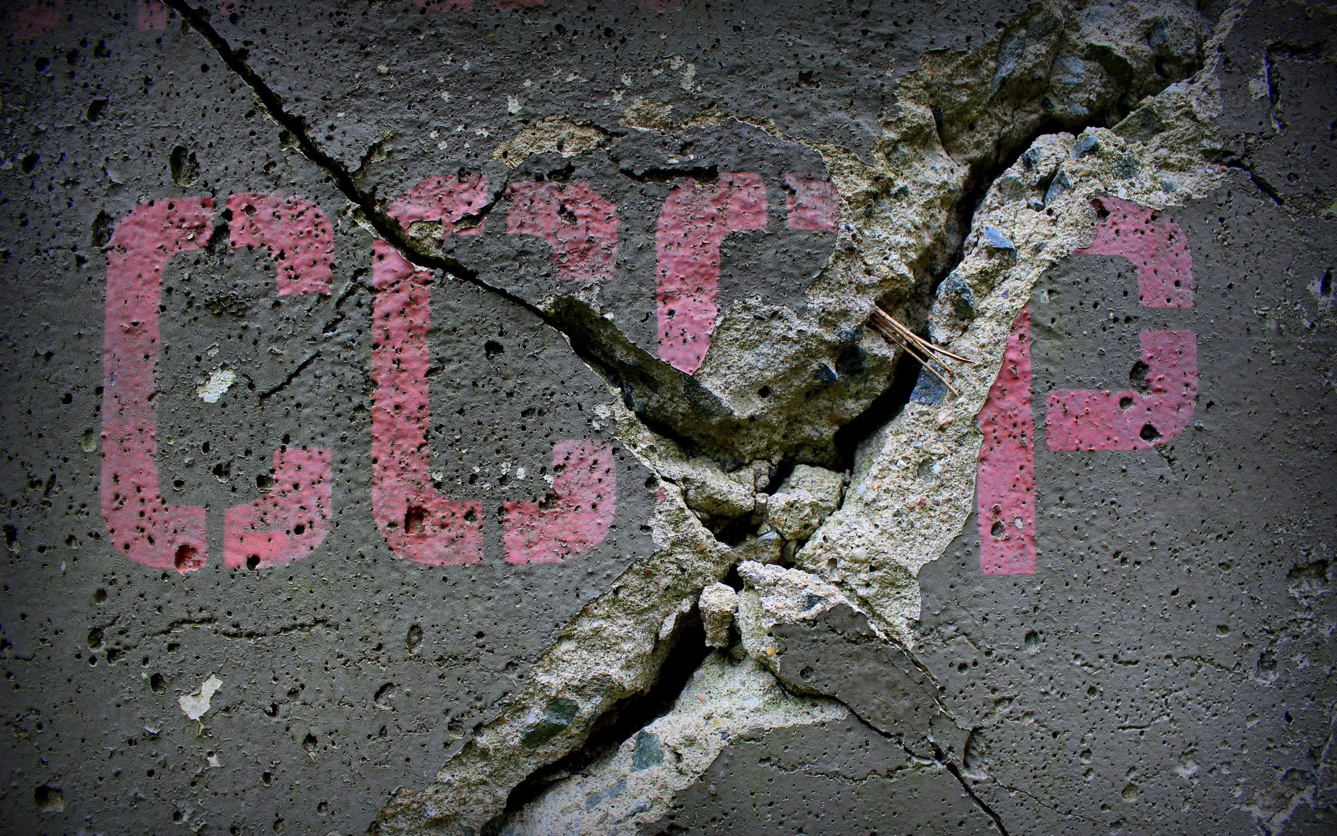La inscripción en la pared de la urss con una grietaLa inscripción en la pared de la URSS con una grieta