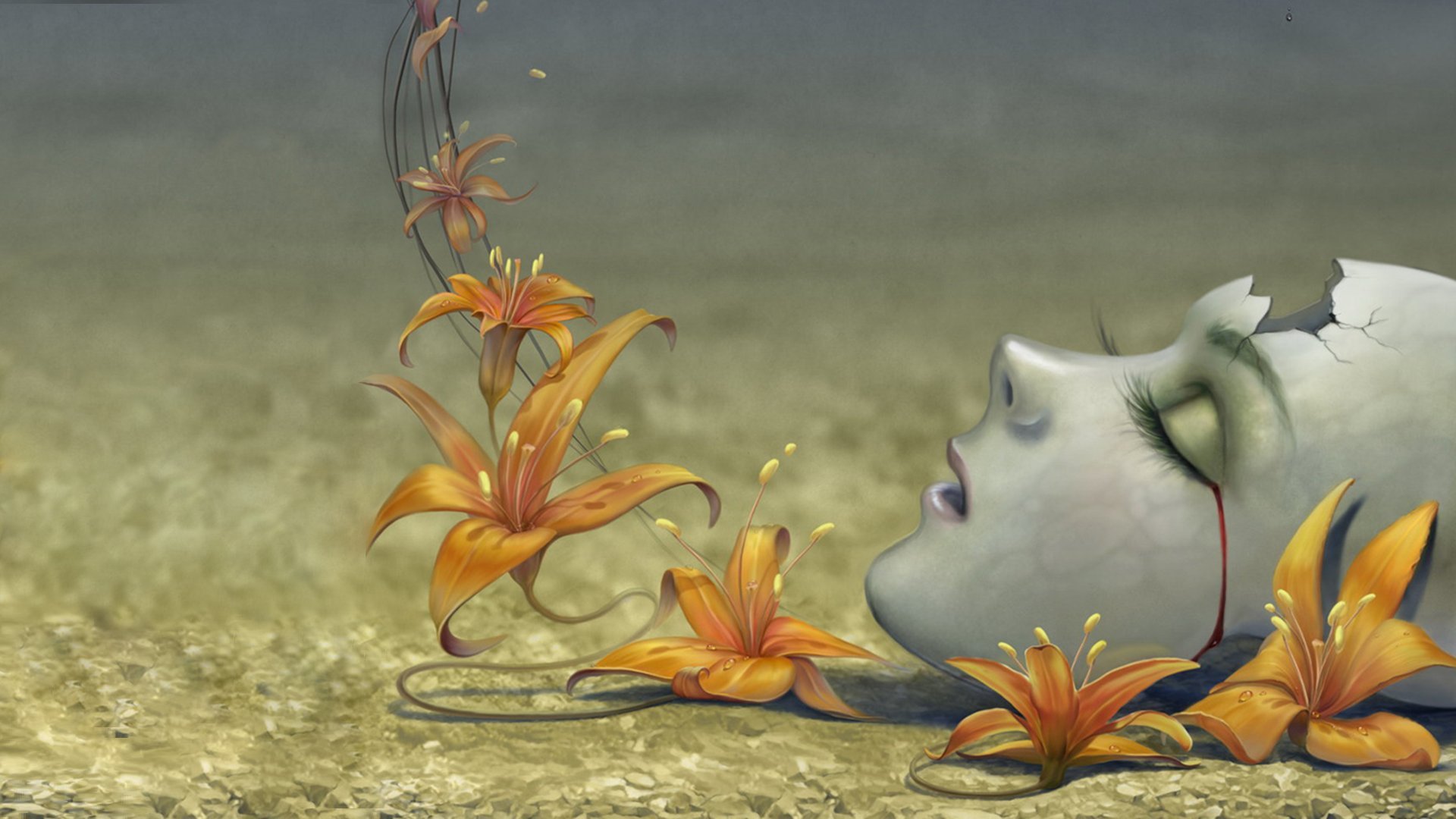 Un hombre con una máscara de gas manchada de sangre sobre un fondo negroUn hombre con una máscara de gas manchada de sangre sobre un fondo negro