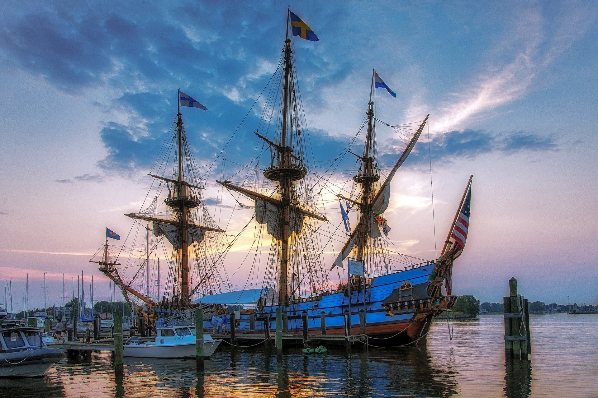 Barco con velas en un pequeño muelle