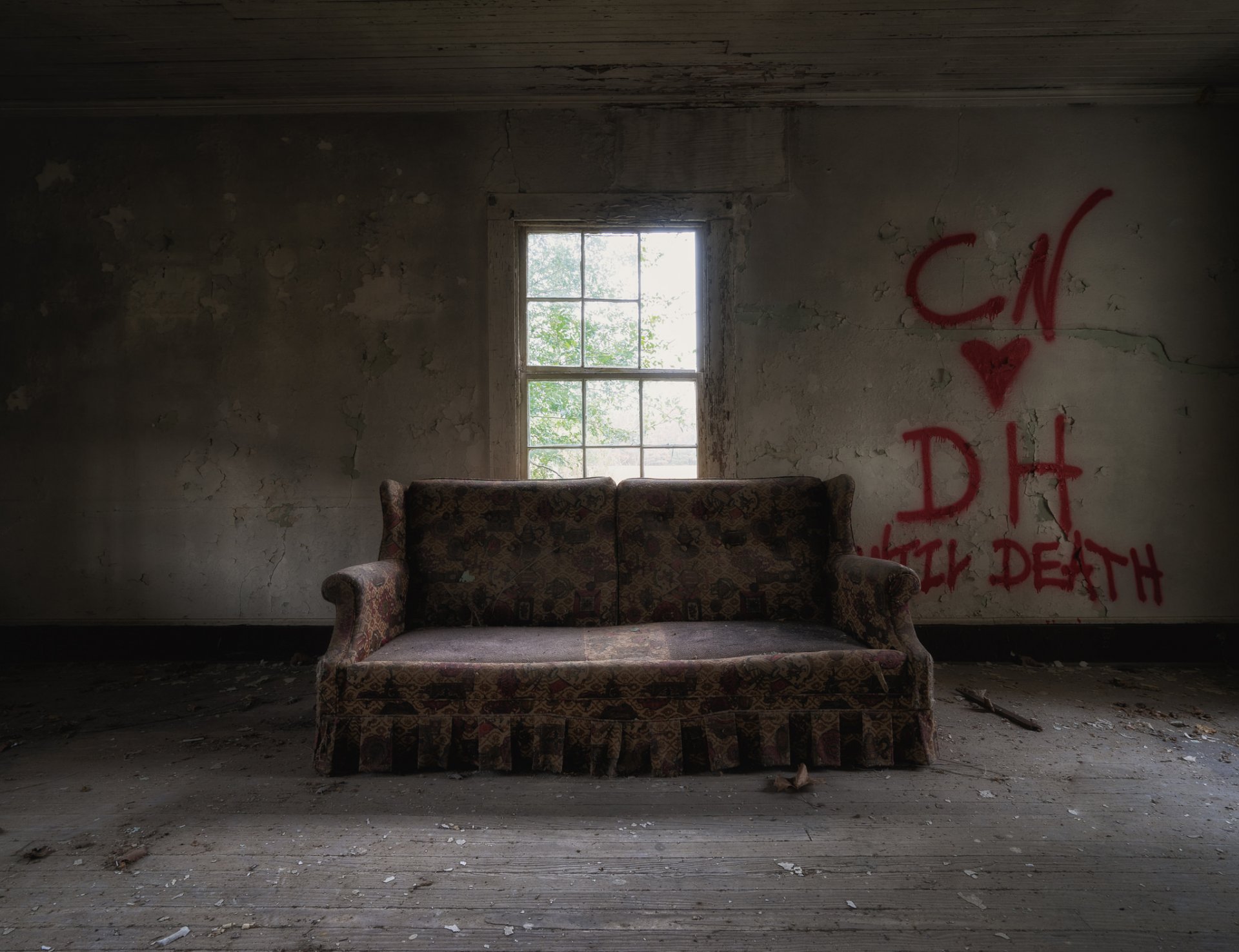Una habitación sombría con una ventana y una sillaUna habitación sombría con una ventana y una silla