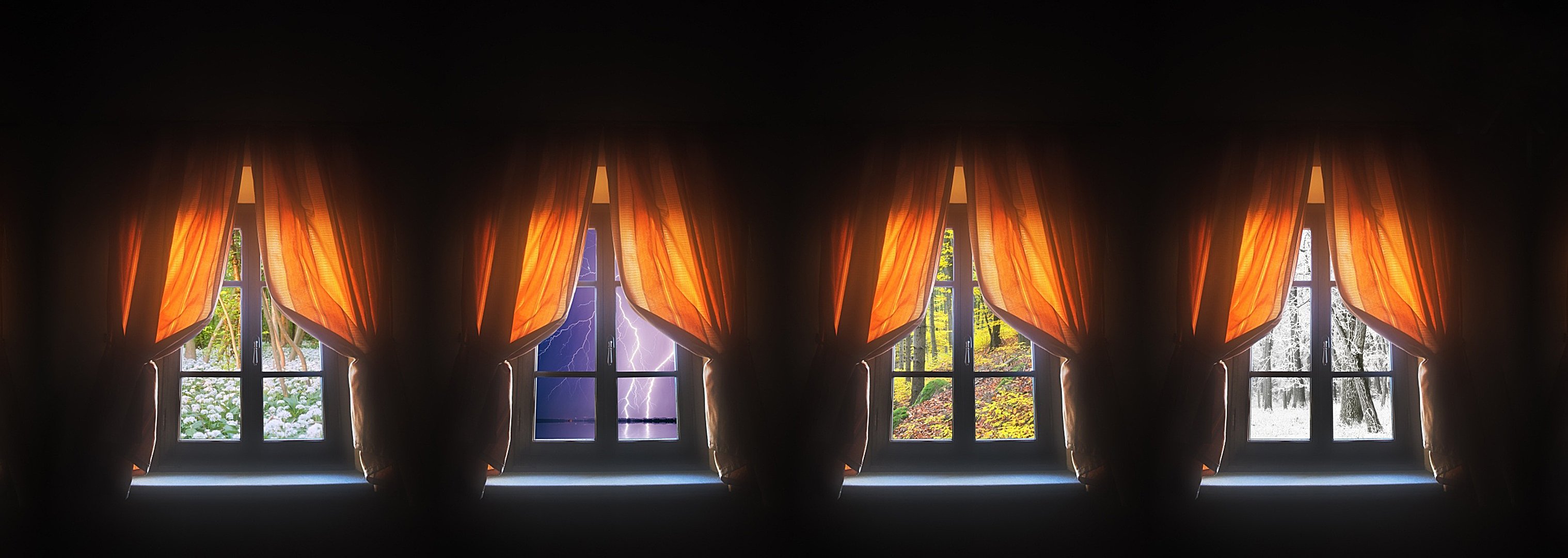 Sofás antiguos en el interior con ventanas panorámicasSofás antiguos en el interior con ventanas panorámicas