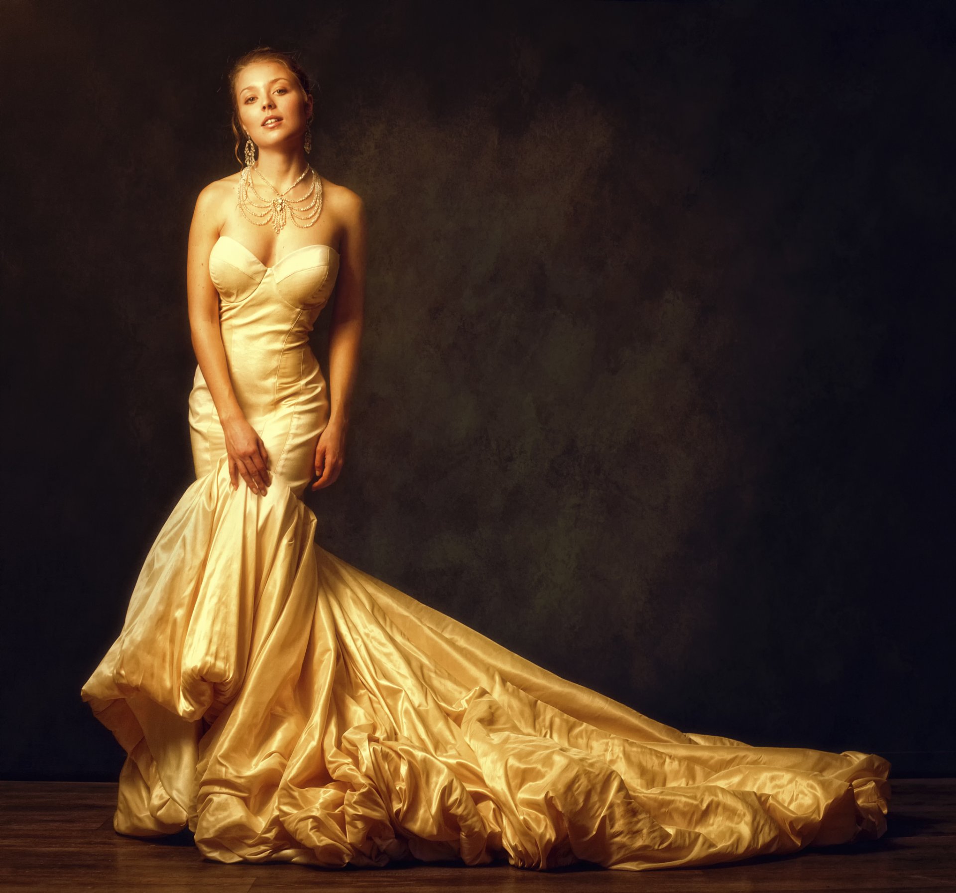 Chica en un hermoso vestido con escote