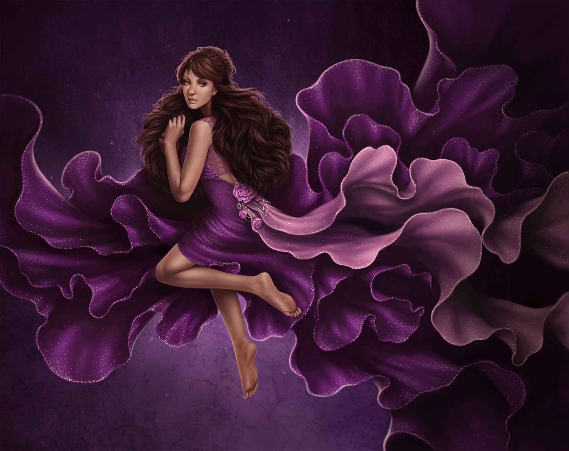 Arte en la forma de una niña cuyo vestido largo parece pétalos de floresArte en la forma de una niña cuyo vestido largo parece pétalos de flores