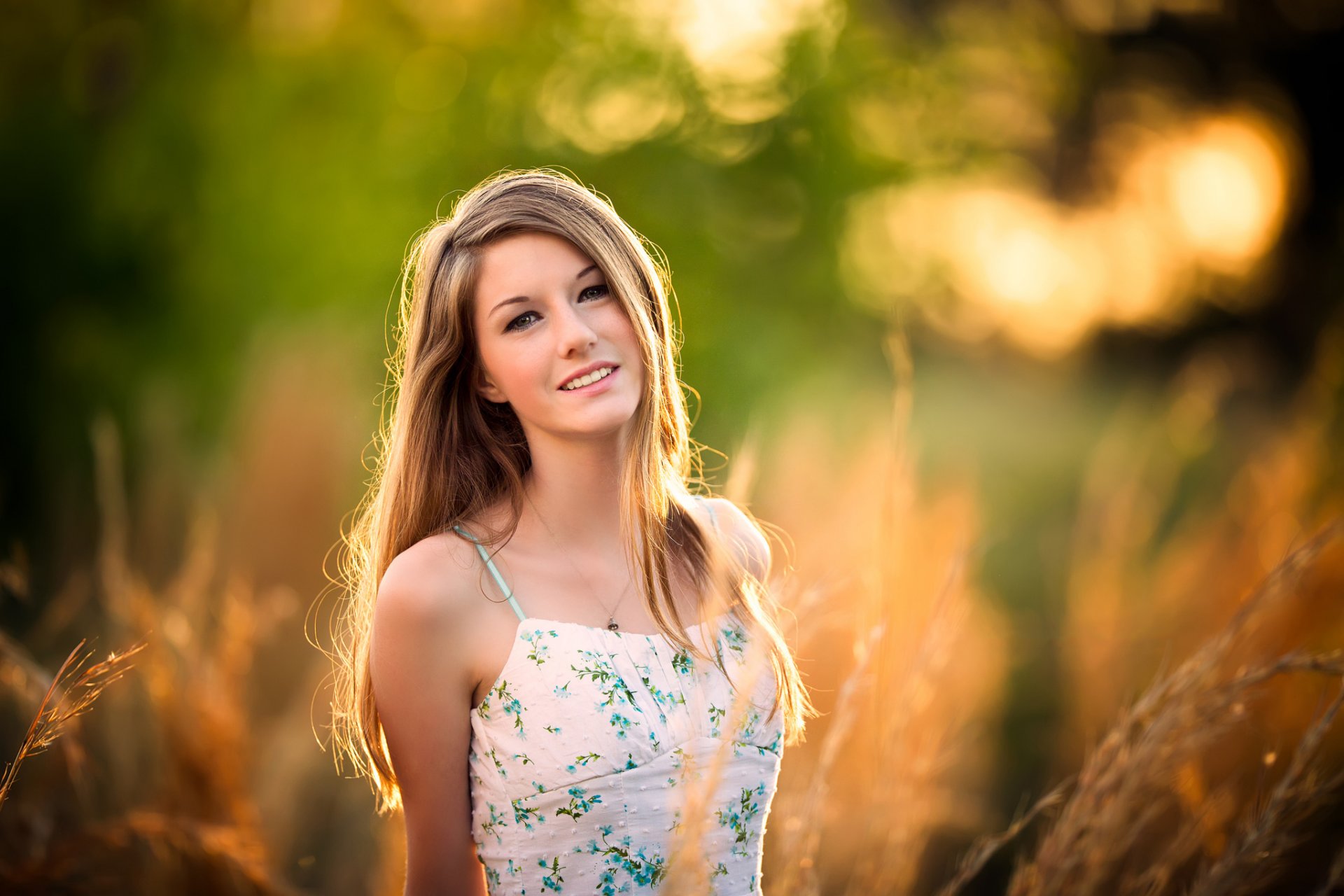 Una chica con un vestido verde camina por un campo de floresUna chica con un vestido verde camina por un campo de flores