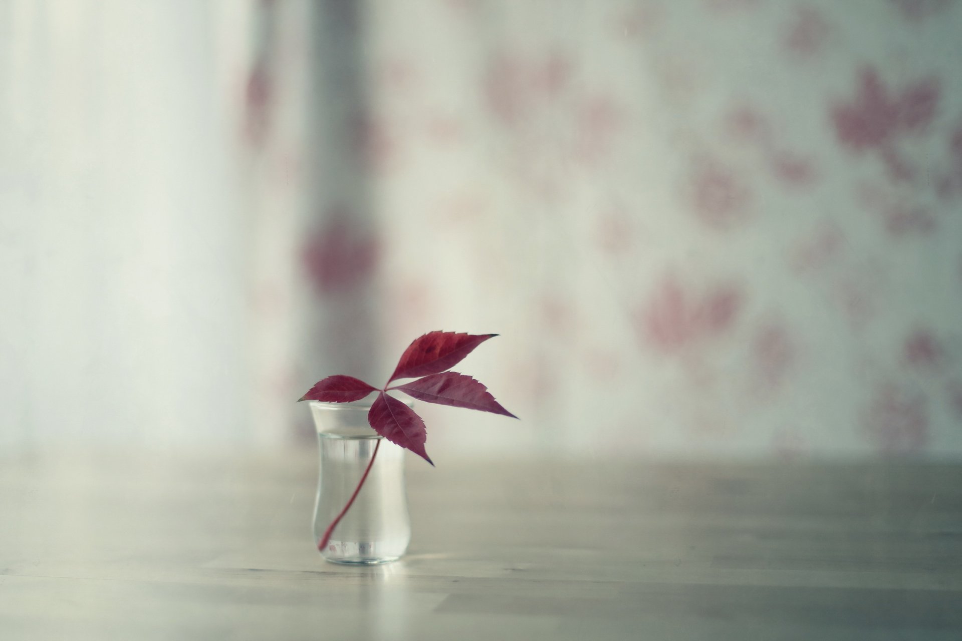 Pequeña vida de la naturaleza en la mesa de la cocina en un recipiente con agua yace una hoja de un árbolPequeña vida de la naturaleza en la mesa de la cocina en un recipiente con agua yace una hoja de un árbol
