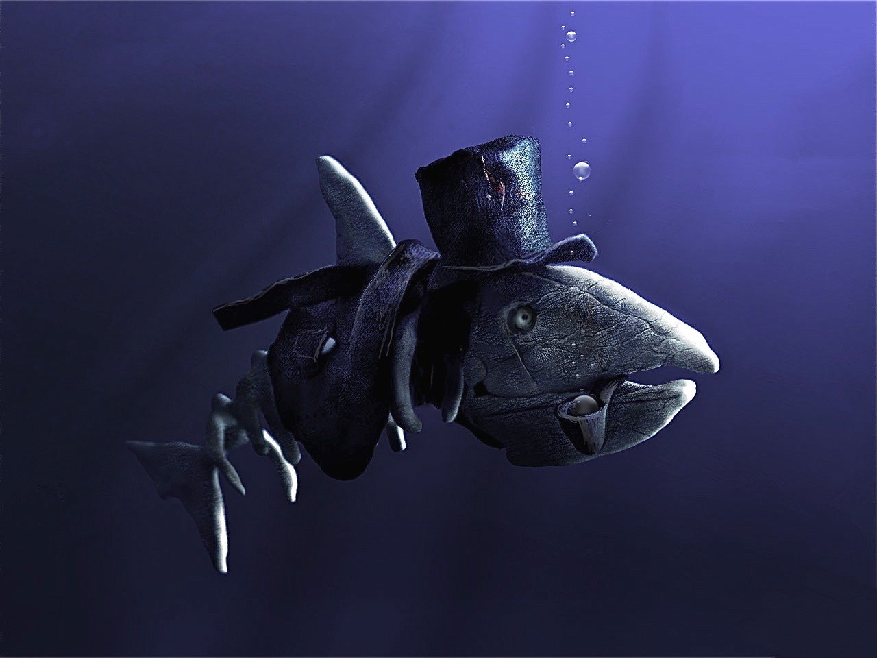 Imagen de un viejo pez con sombrero