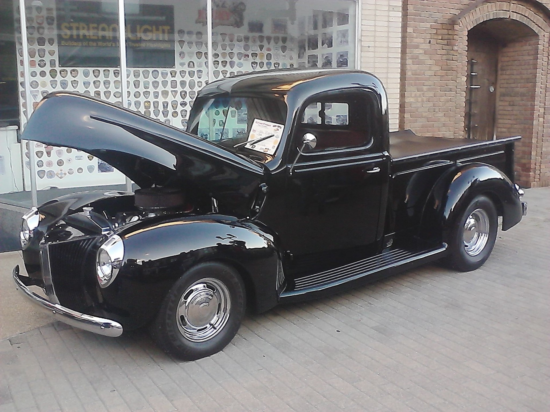 En la foto de un coche antiguo con el capó abiertoEn la foto de un coche antiguo con el capó abierto