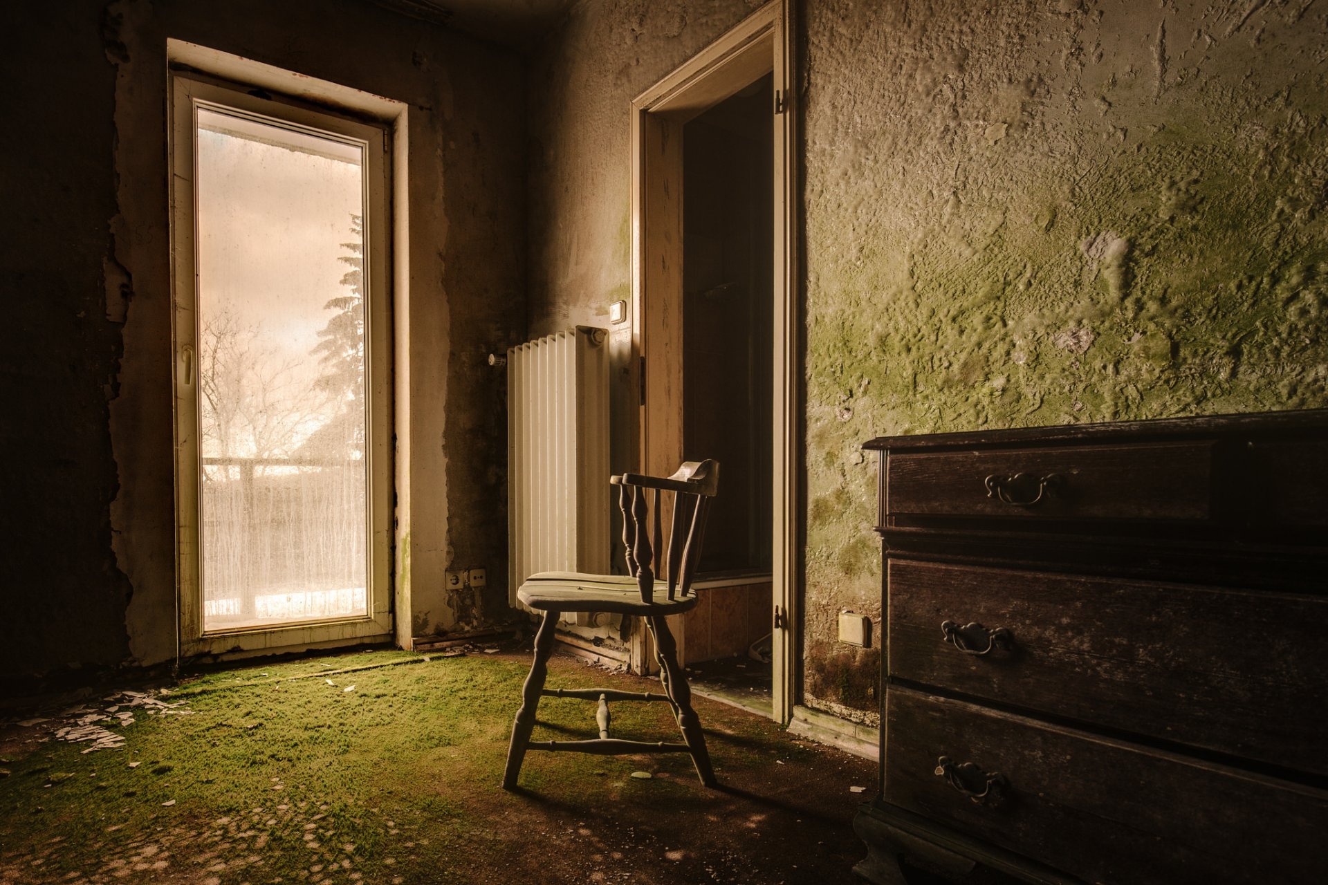 Una tienda solitaria . vista de la ciudad en blanco y negroUna tienda solitaria . vista de la ciudad en blanco y negro
