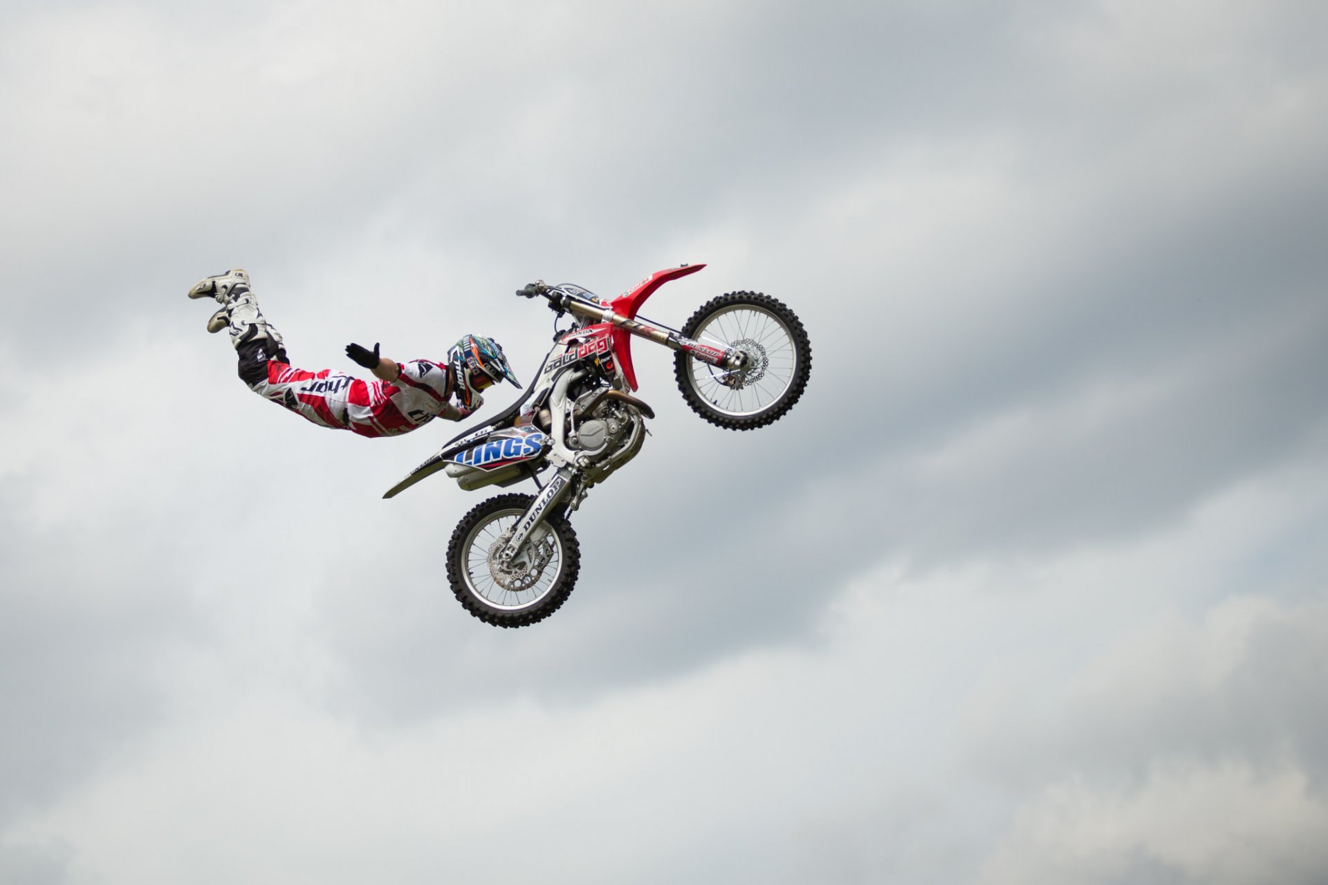 Snowboarder en las montañas en vuelo en el cielo azulSnowboarder en las montañas en vuelo en el cielo azul