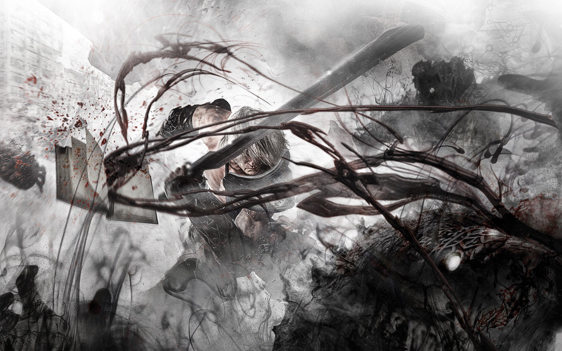 Un hombre apuñala con una espada en un puesto patéticoUn hombre apuñala con una espada en un puesto patético