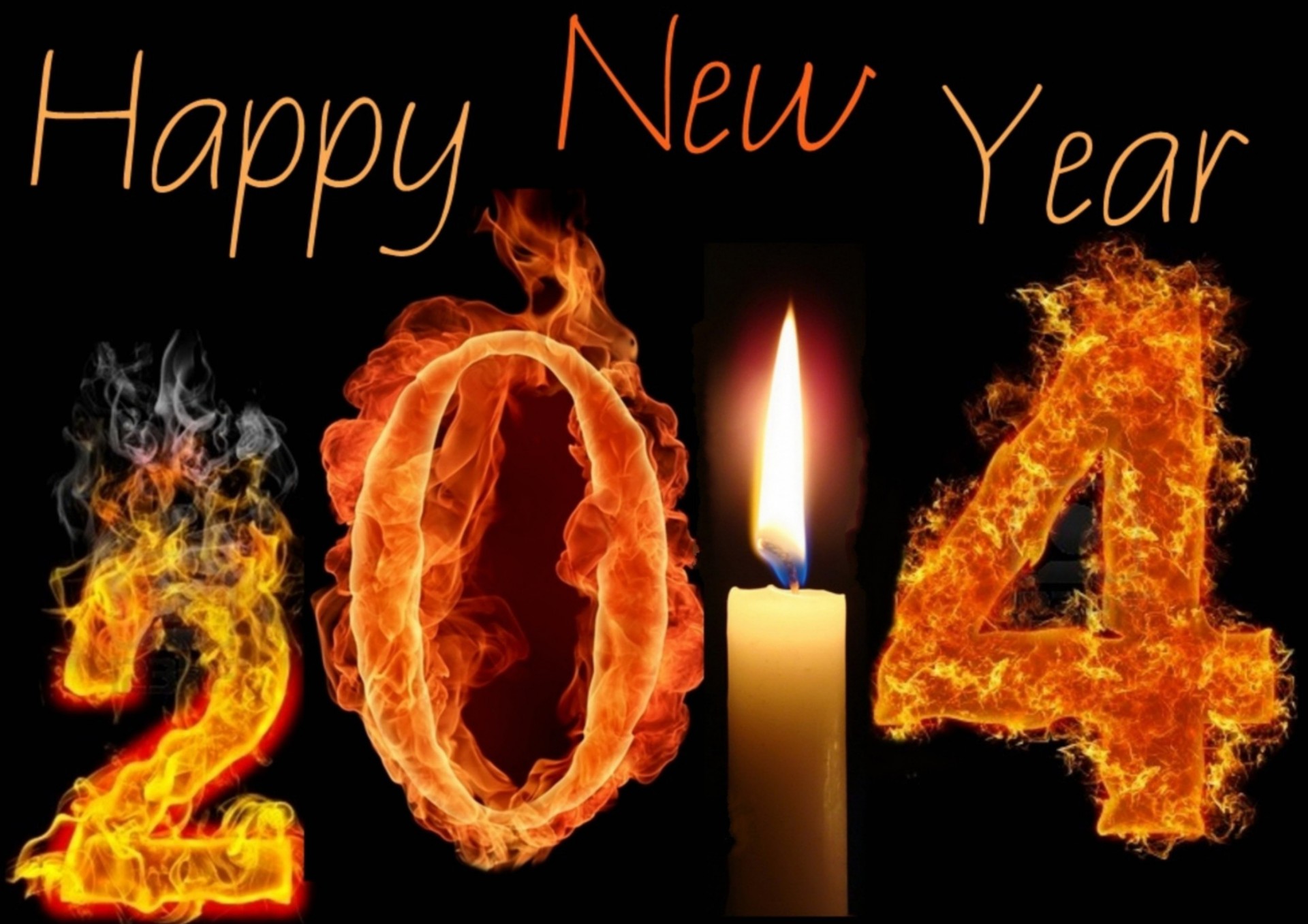 Números llameantes 2014 con una vela encendida