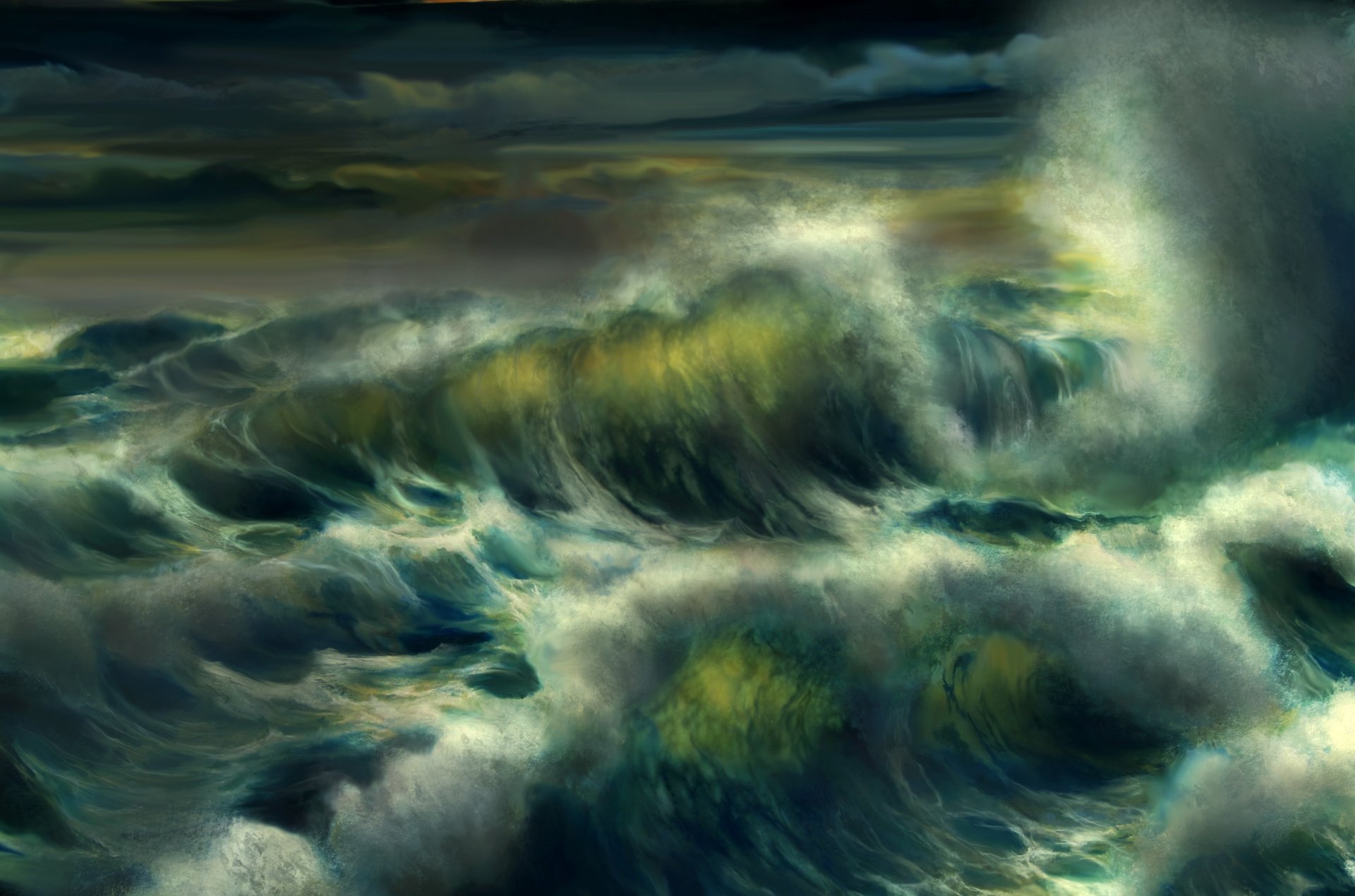 La niña se acuesta en el agua y se cubre con las manosLa niña se acuesta en el agua y se cubre con las manos
