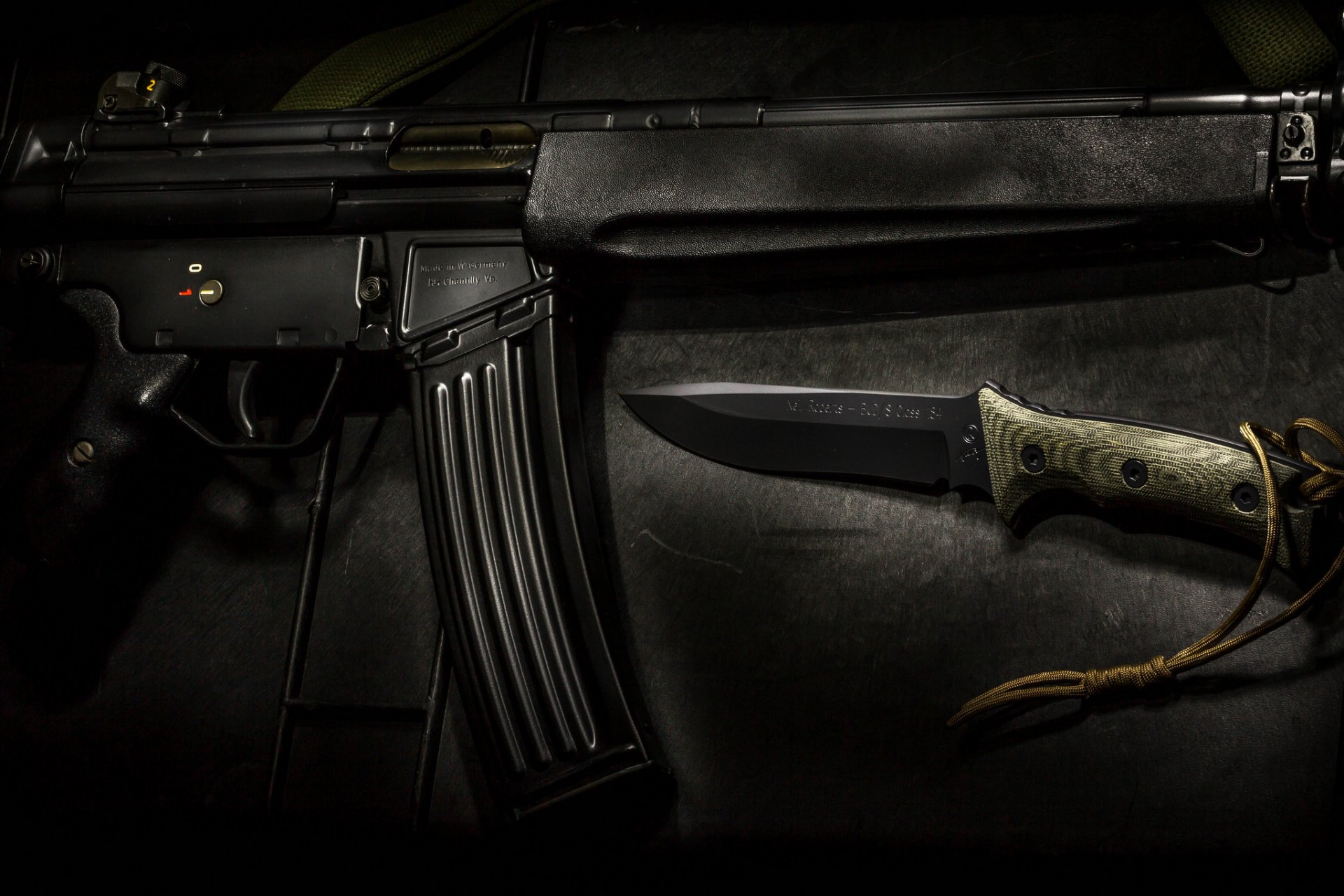 Fusil de asalto con silenciador sobre fondo blancoFusil de asalto con silenciador sobre fondo blanco