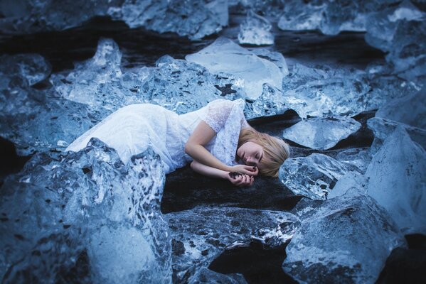 La niña yace en el hielo