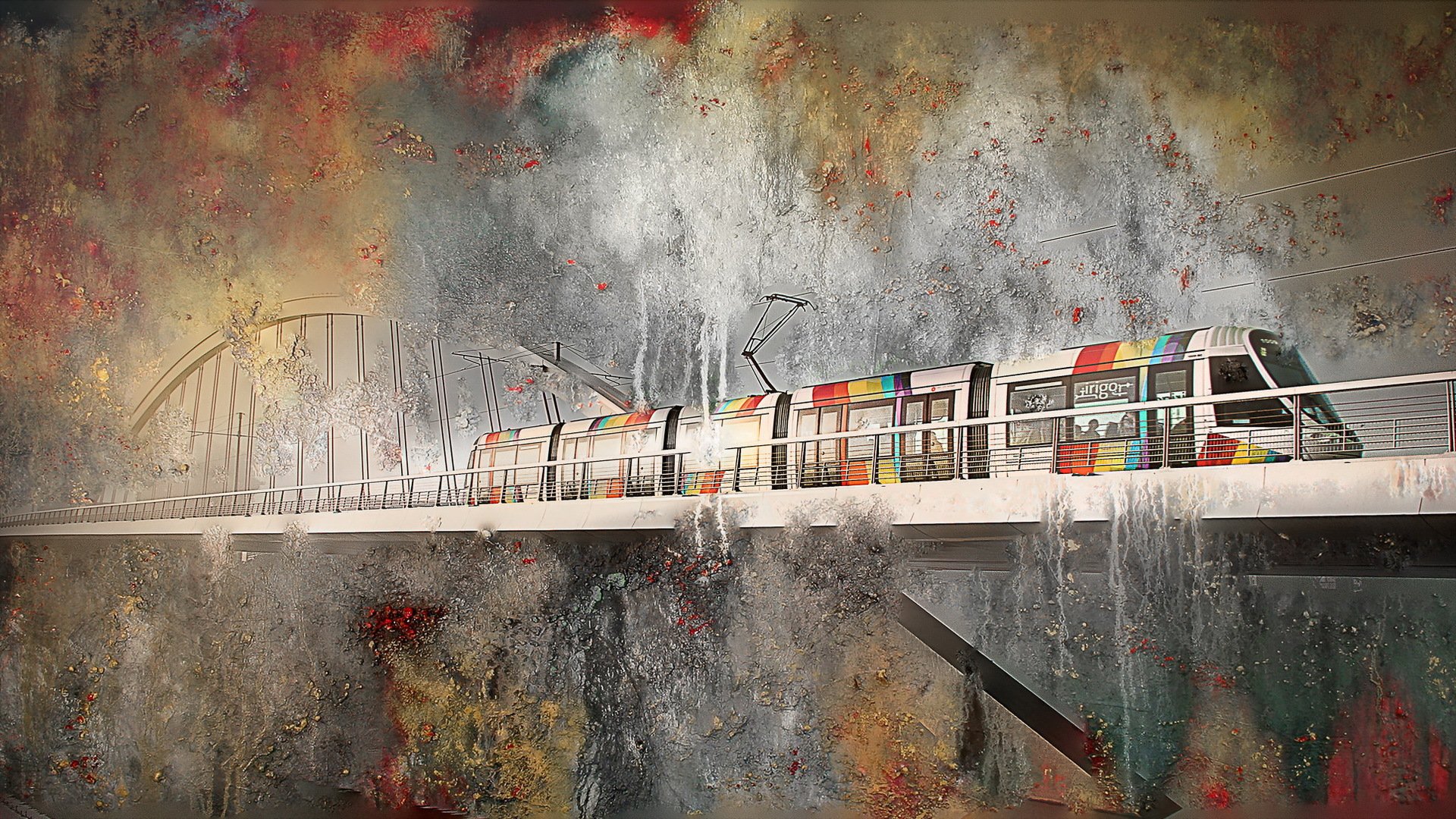 Fondo abstracto Apocalipsis en el puente del tren del arco iris
