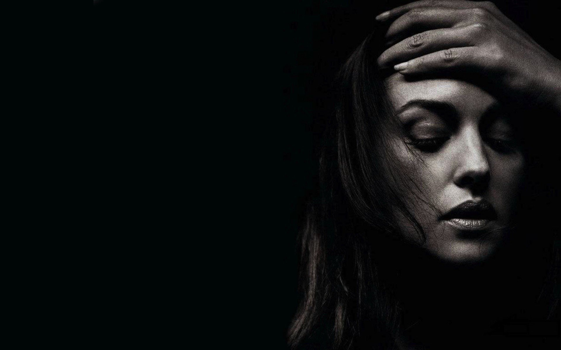 Foto en blanco y negro de la cara de la actriz sobre fondo negroFoto en blanco y negro de la cara de la actriz sobre fondo negro