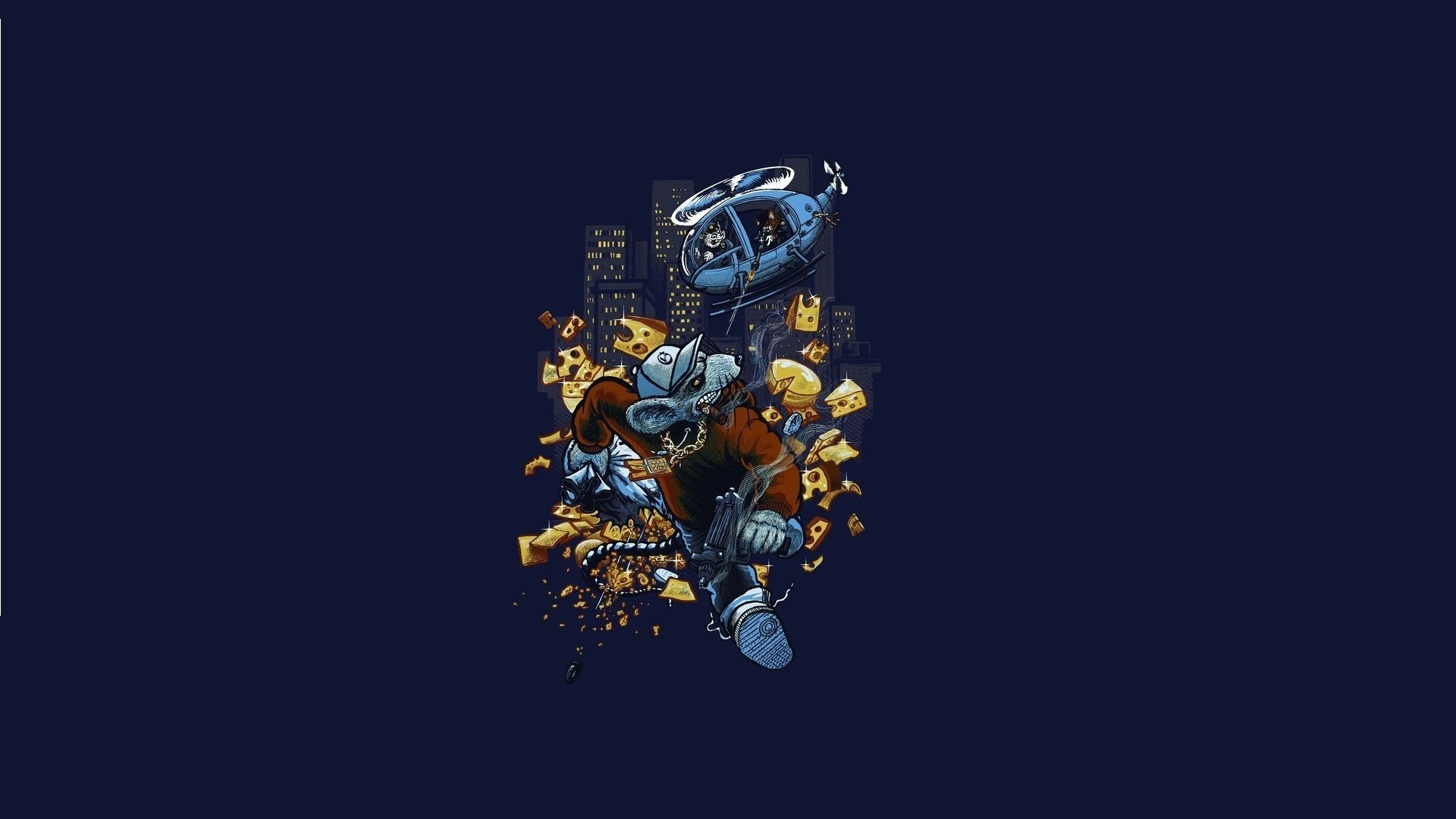 Helicóptero de arte inusual y ratón en el estilo minimalista