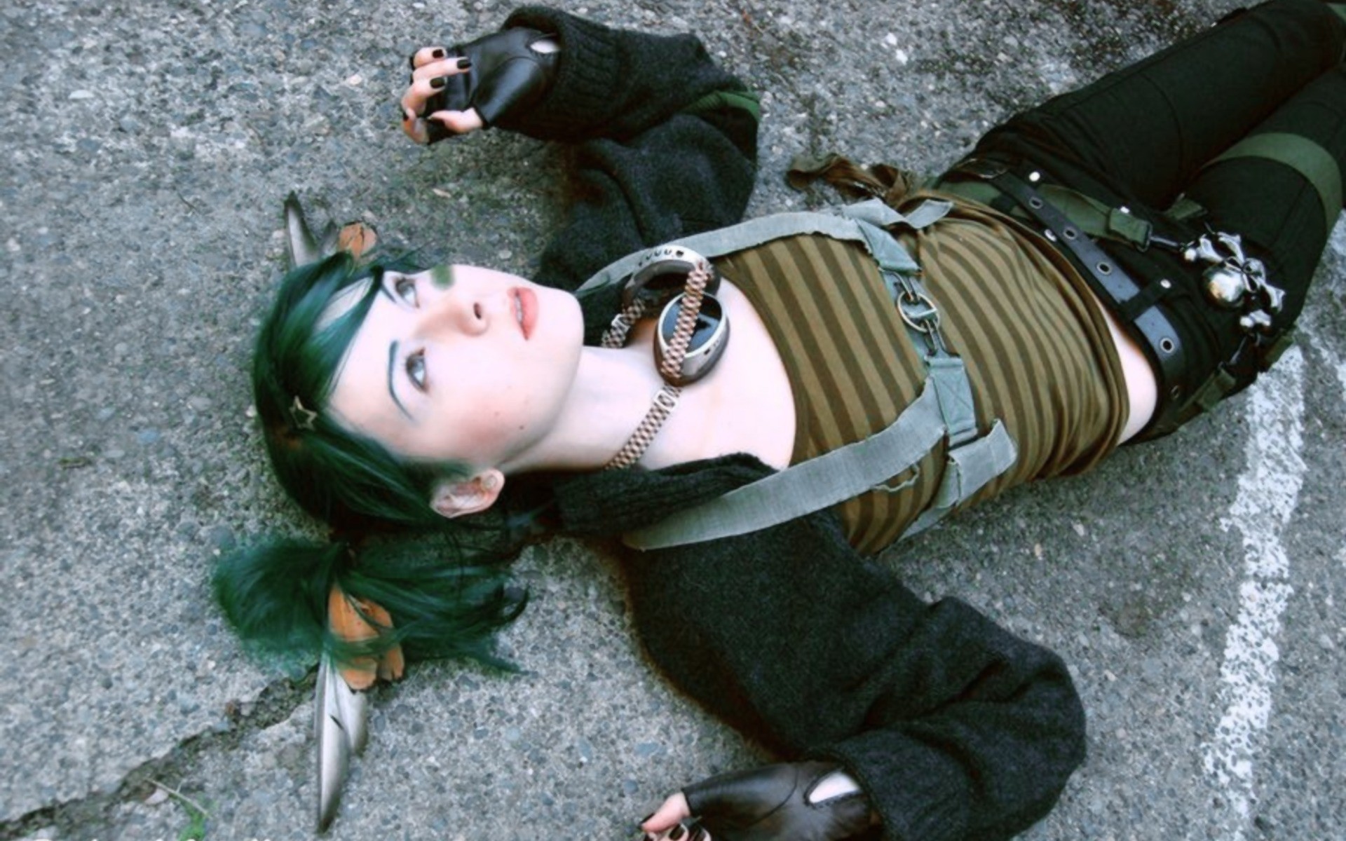 Niño en la calle sentado en el asfalto contra el fondo de la hierbaNiño en la calle sentado en el asfalto contra el fondo de la hierba