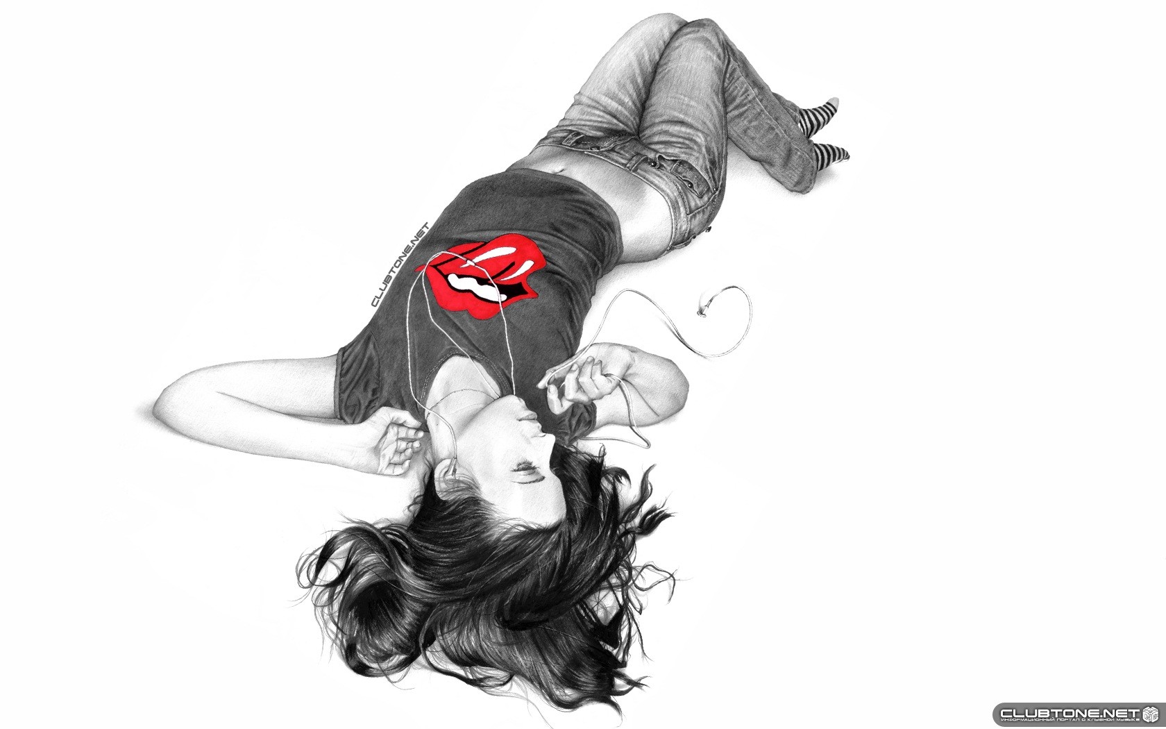 La chica en los auriculares, las manos en el tatuajeLa chica en los auriculares, las manos en el tatuaje