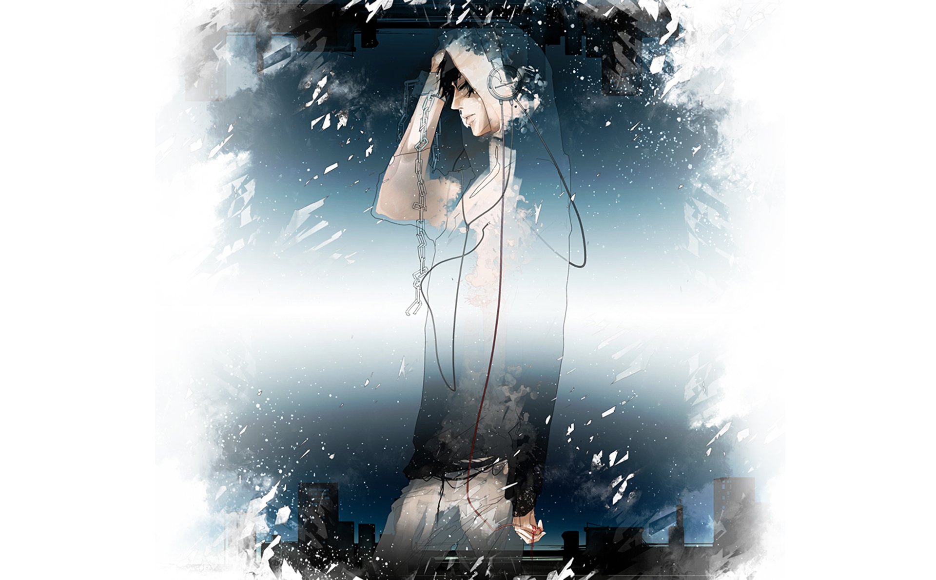 El tipo con auriculares lanza una mirada descaradaEl tipo con auriculares lanza una mirada descarada