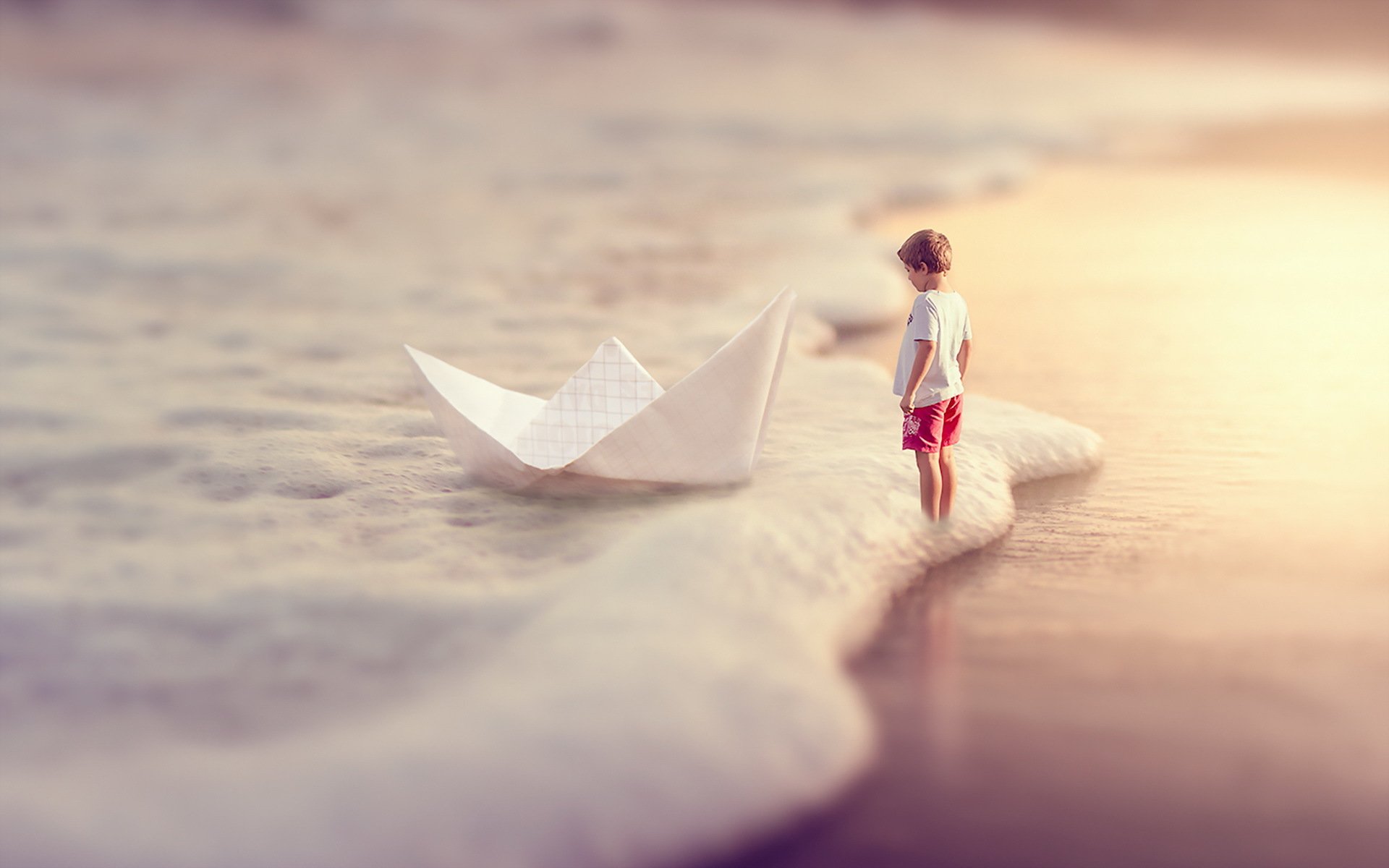 Un valiente barco de papel flotando en las olas azules