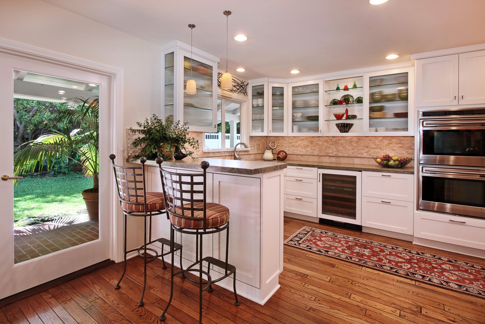 Elegante sala de estar en un apartamento moderno con sofás de cuero y barra de barElegante sala de estar en un Apartamento moderno con sofás de cuero y barra de Bar