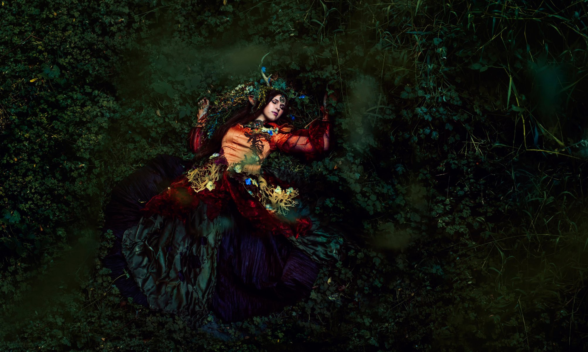 Chica con un violín en un vestido blanco en el fondo del bosque