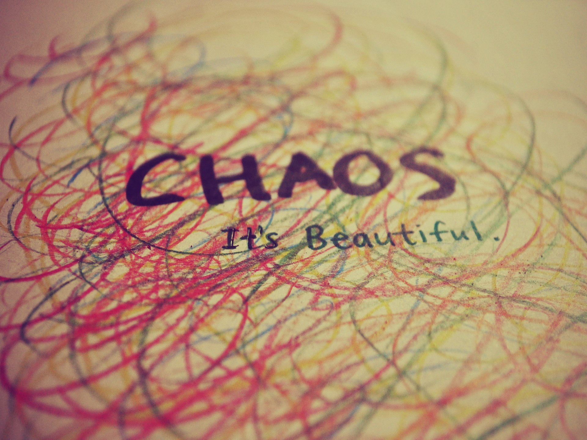 La inscripción " chaos. it's beautiful " entre líneas multicoloresLa Inscripción " Chaos. It's beautiful " entre líneas multicolores