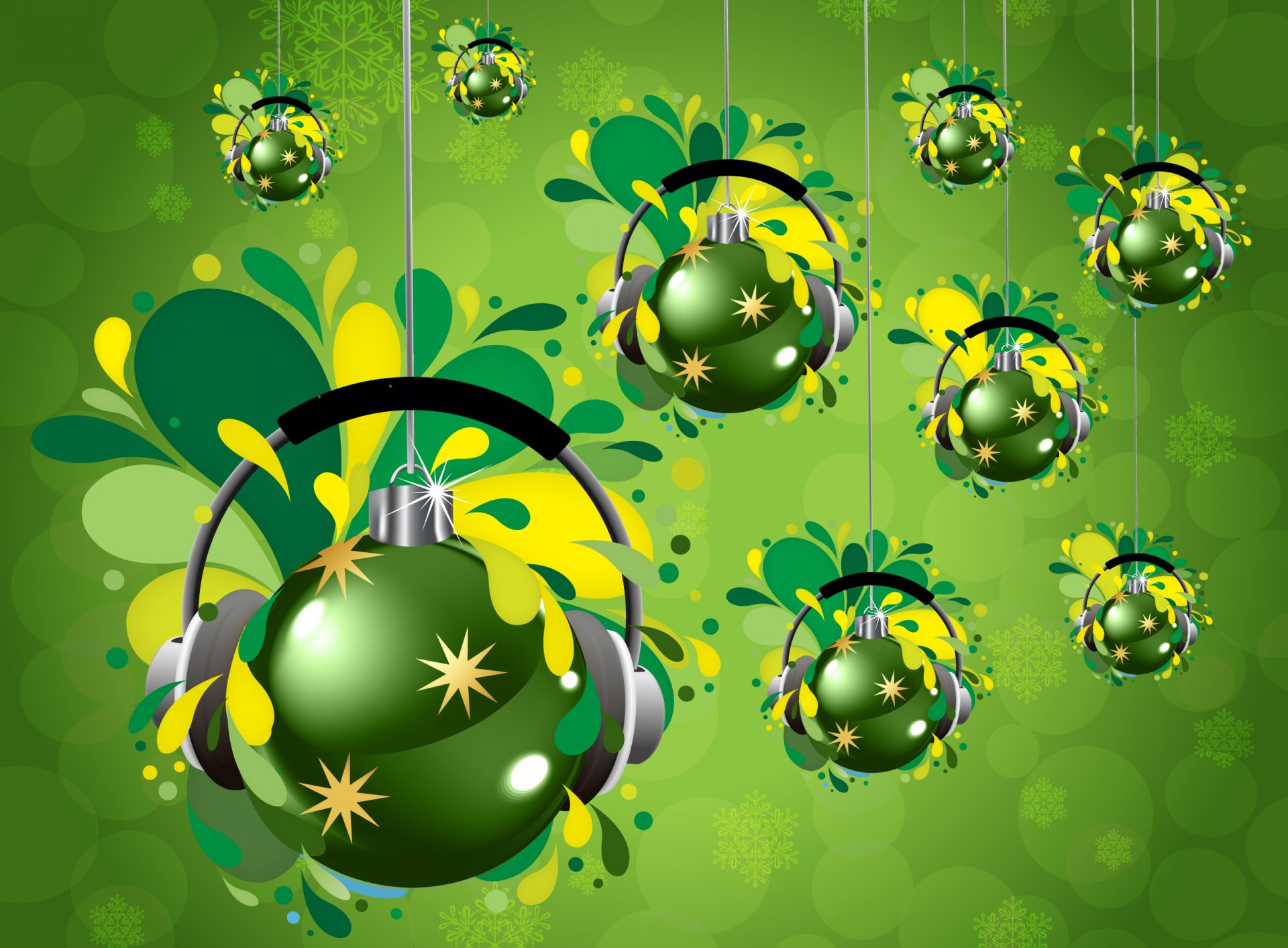 Imagen pintada de bolas de Navidad verdes