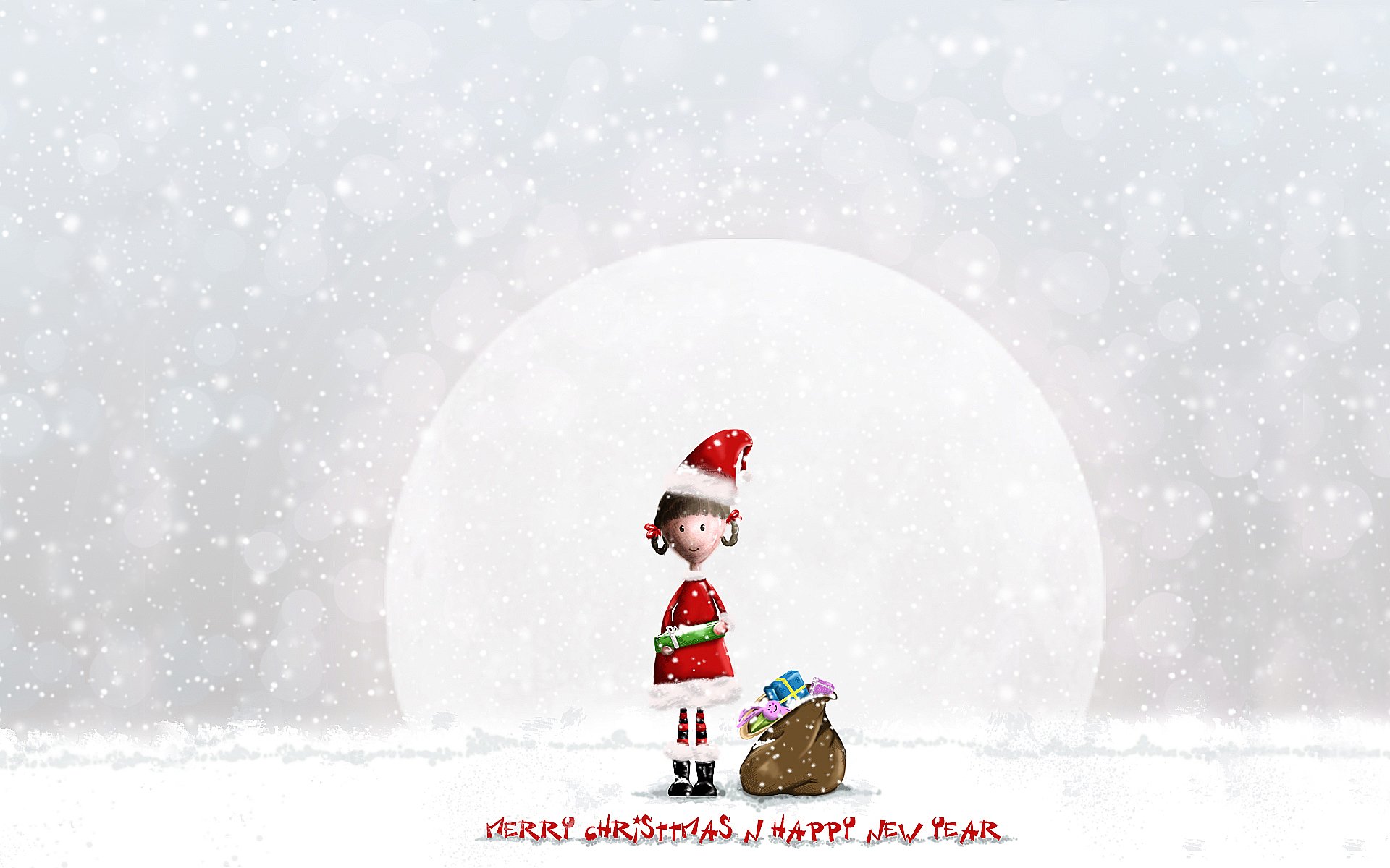 Chica en traje de navidad y con una bolsa de regalosChica en traje de Navidad y con una bolsa de regalos