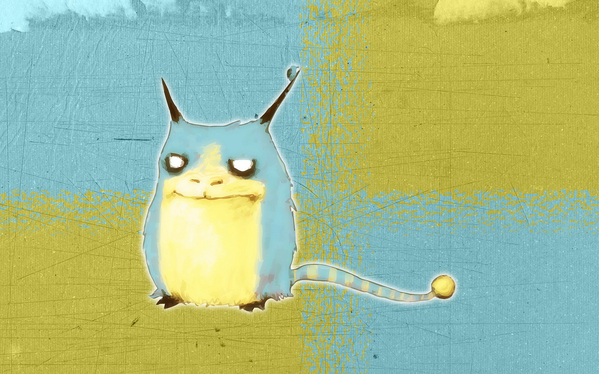 Dibujo de un monstruo sobre un fondo amarillo-azul