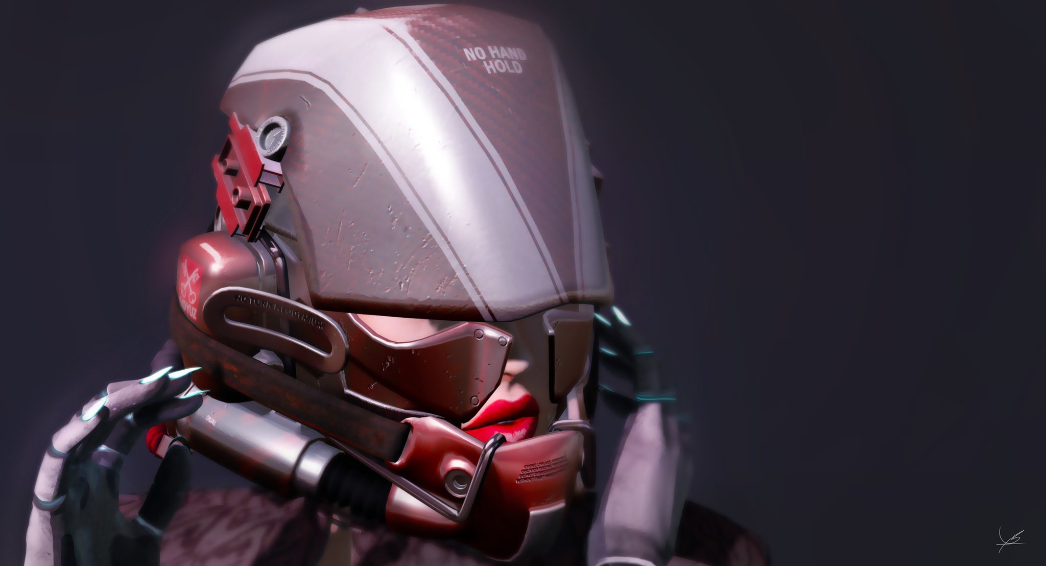 Imagen futurista de una niña en un casco con auricularesImagen futurista de una niña en un casco con auriculares