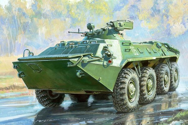 Btr en ejercicios militares en el campo de entrenamiento tácticoBTR en ejercicios militares en el campo de entrenamiento táctico