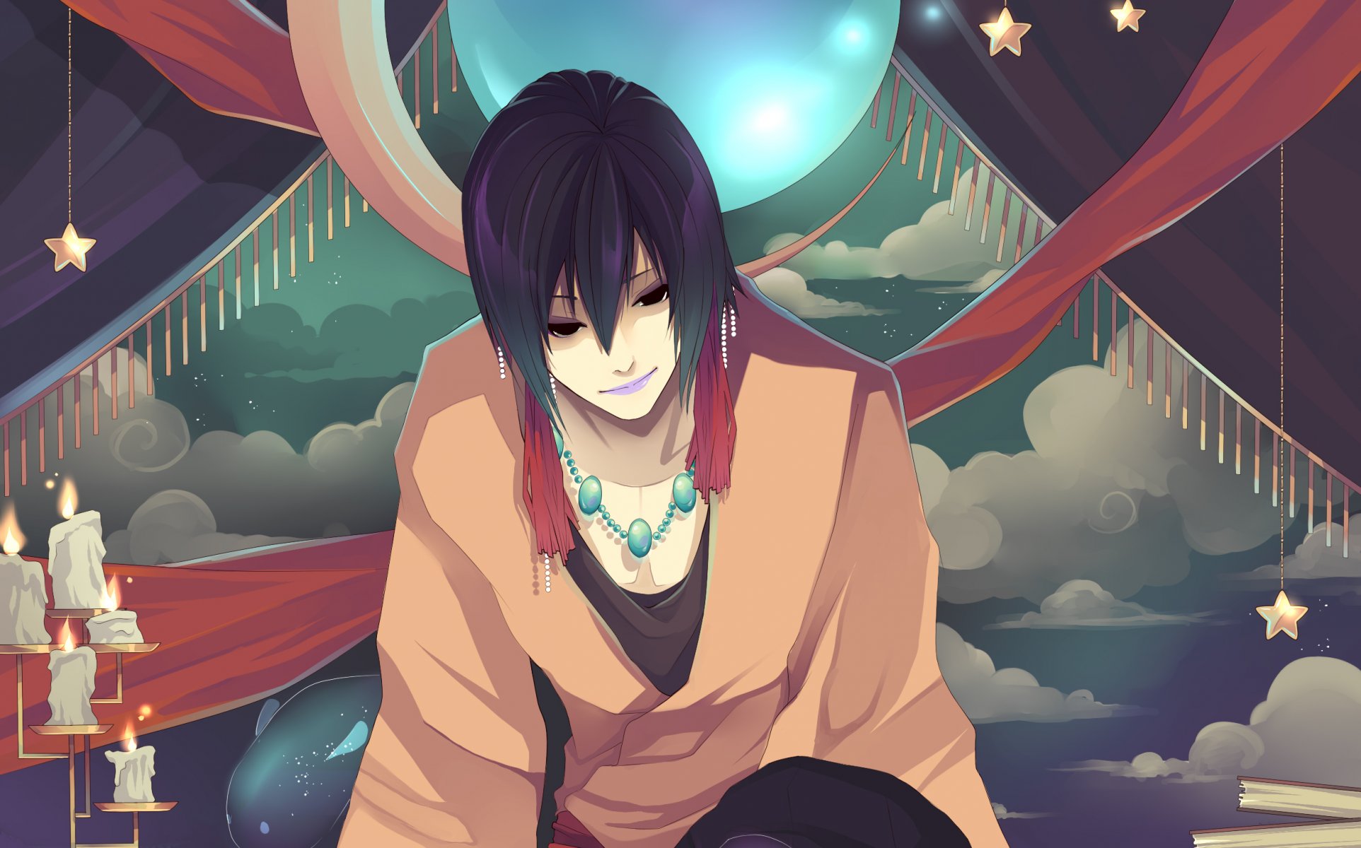Chica con velas en el fondo de las nubes y las estrellasChica con velas en el fondo de las nubes y las estrellas