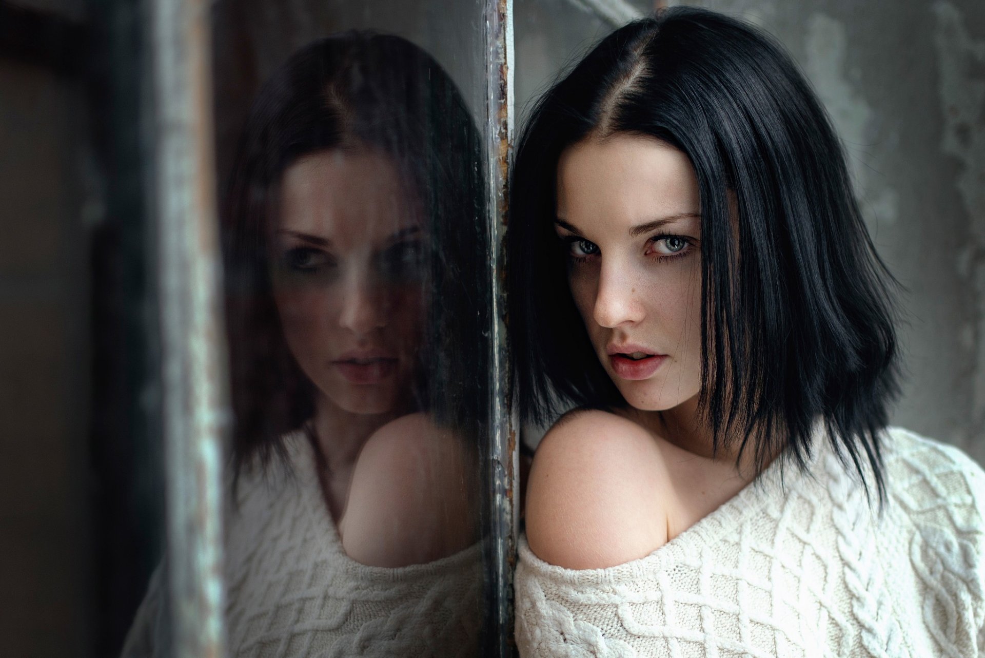 La misteriosa mirada de la chica. la chica detrás del cristalLa misteriosa mirada de la chica. La chica detrás del cristal