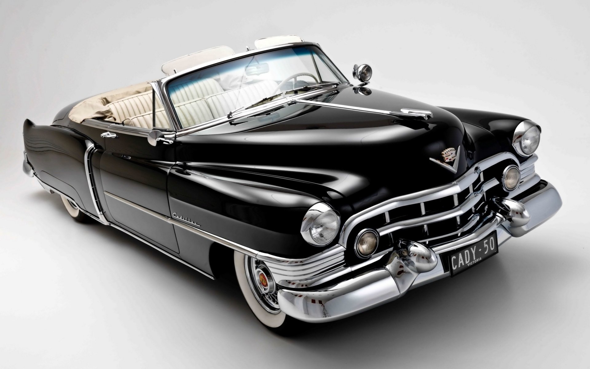 Sobre un fondo blanco, el legendario cadillac negro elegante con tapa abiertaSobre un fondo blanco, el legendario Cadillac negro elegante con tapa abierta