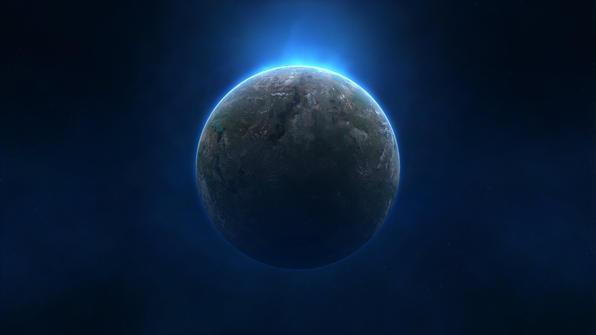 Cohete en un planeta azul en el espacio con estrellasCohete en un planeta azul en el espacio con estrellas