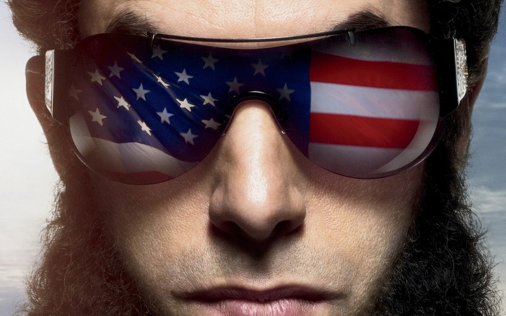 La cara de Un hombre con gafas con la bandera de Estados Unidos