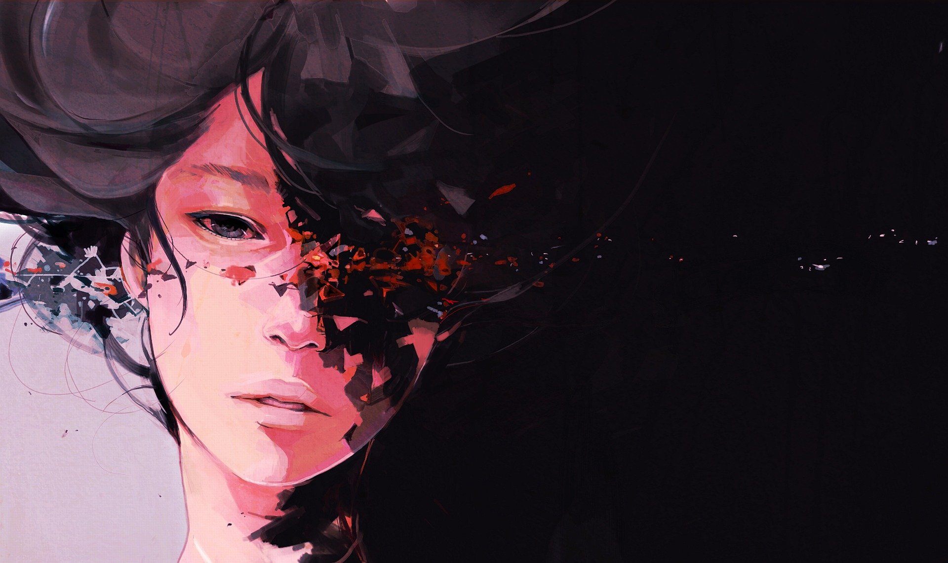 La cara de la niña china de transición en negro