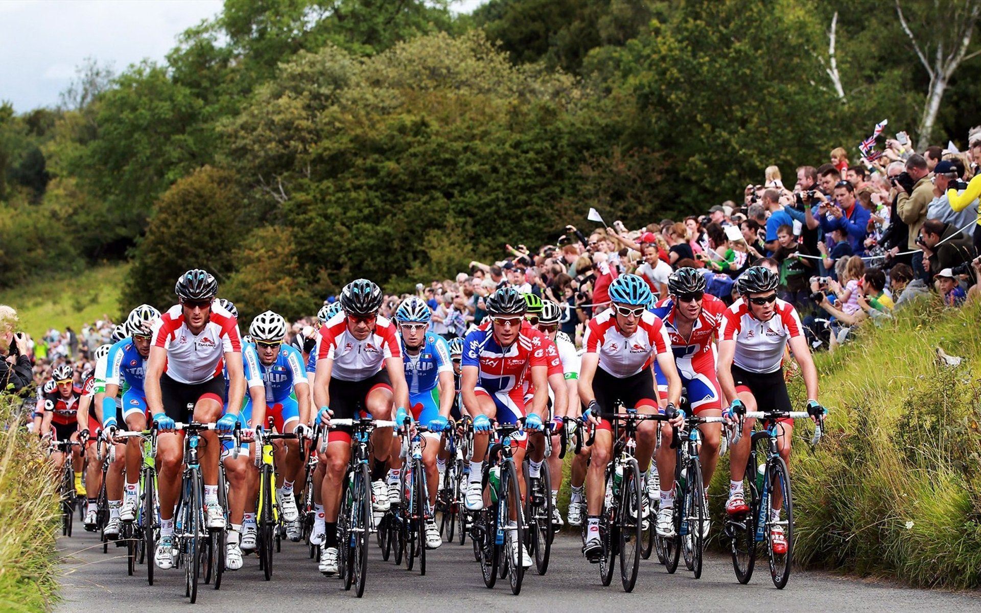 Carrera de bicicletas en la ciudad. Atletas ciclistas fondos de pantalla