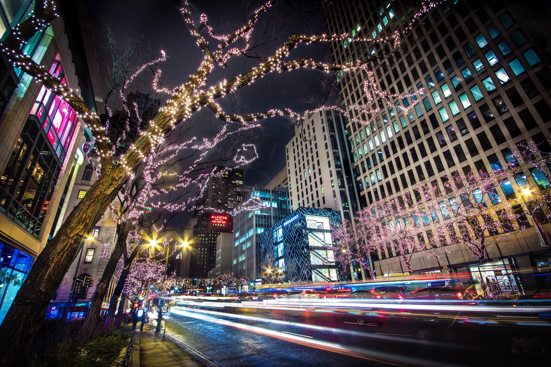 Brillante carretera de Asia desde lo alto de los rascacielos