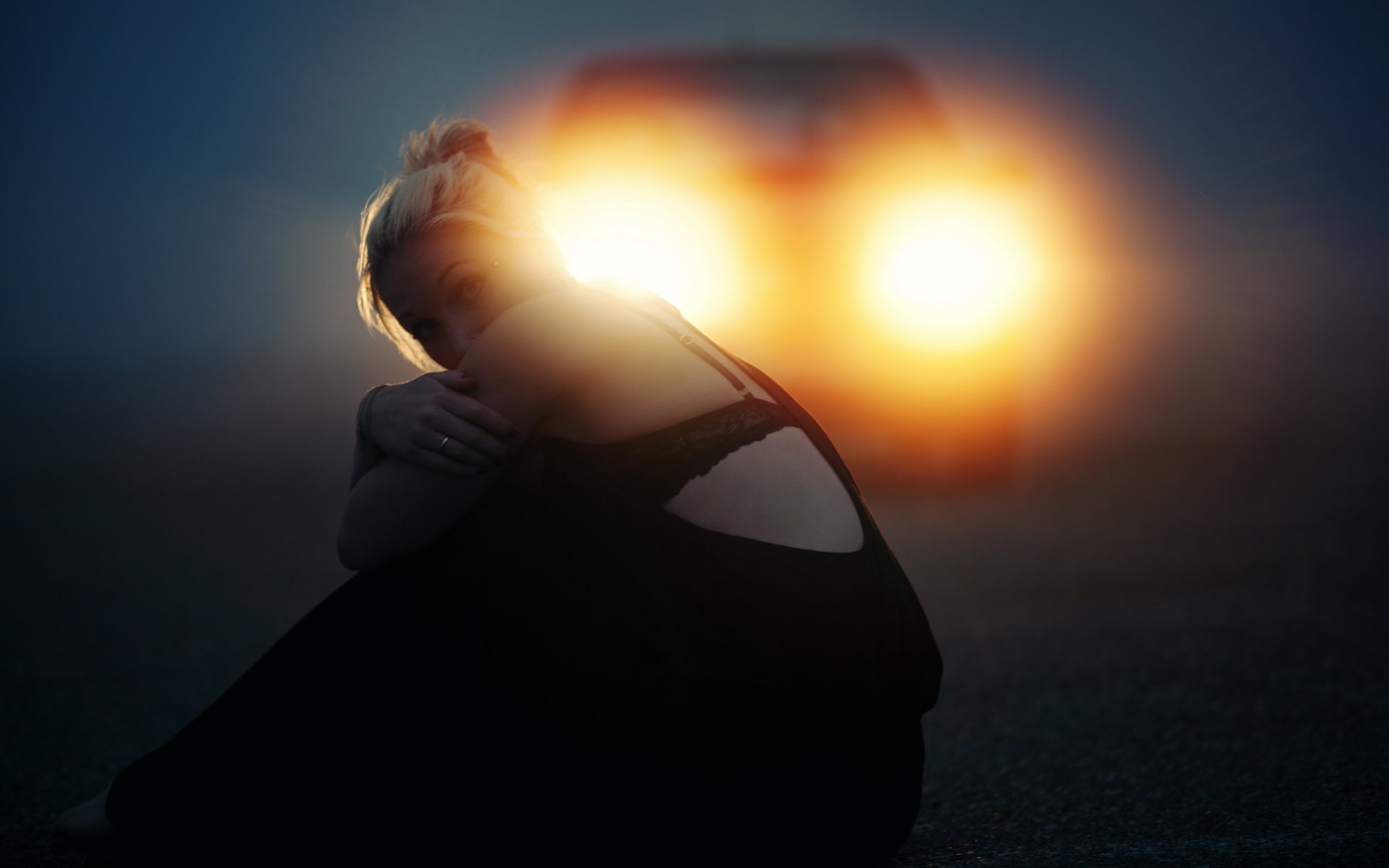 La niña caminaba por el camino cogió el coche ya se había sentido frustrado en la carretera , pero la felicidad del coche se detuvoLa niña caminaba por el camino cogió el coche ya se había sentido frustrado en la carretera , pero la felicidad del coche se detuvo
