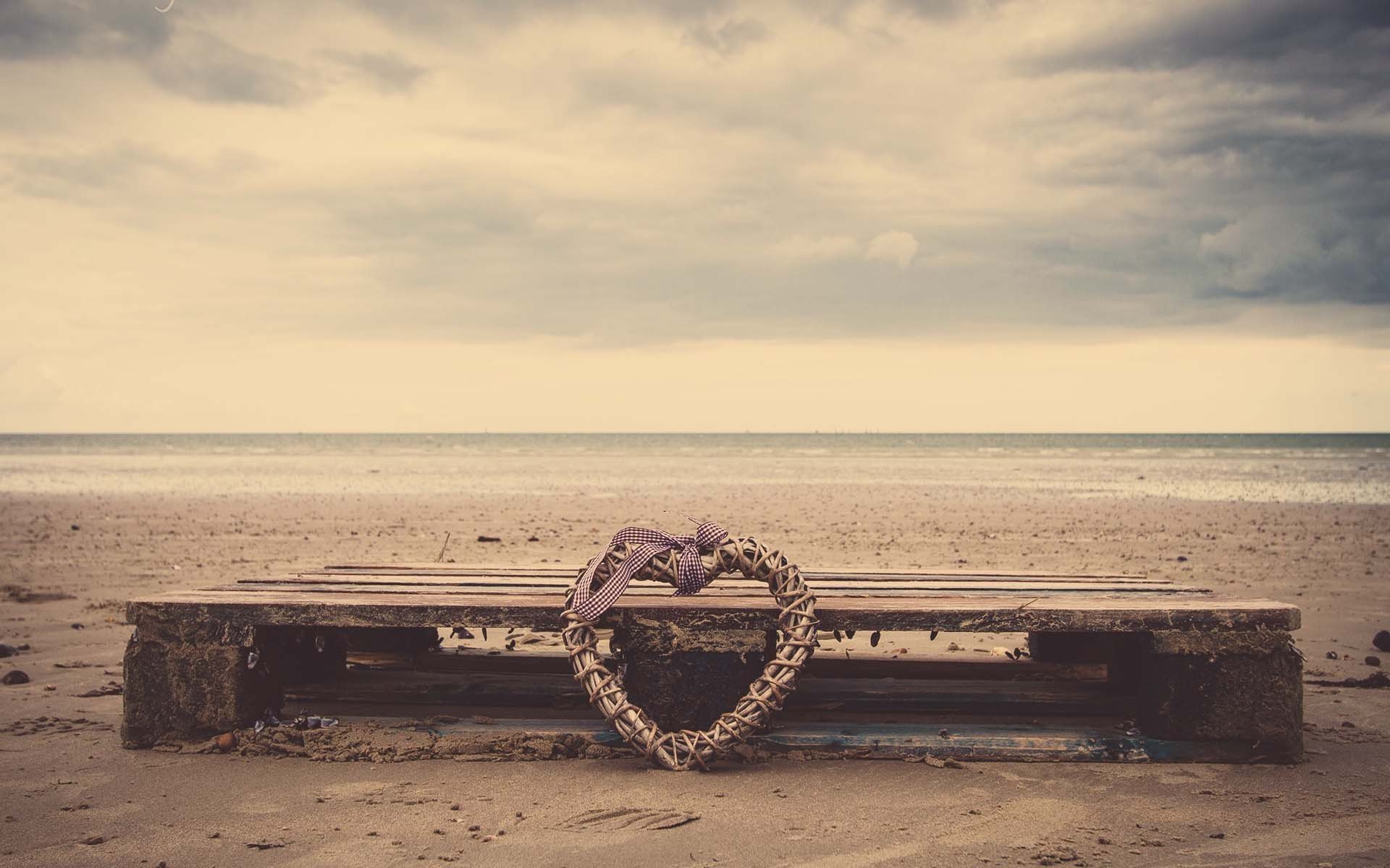 Un corazón olvidado en un banco junto al mar