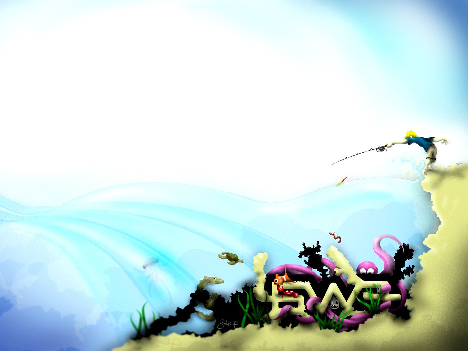 Ballena bajo el agua junto a casas de madera y ventanas iluminadasBallena bajo el agua junto a casas de madera y ventanas iluminadas
