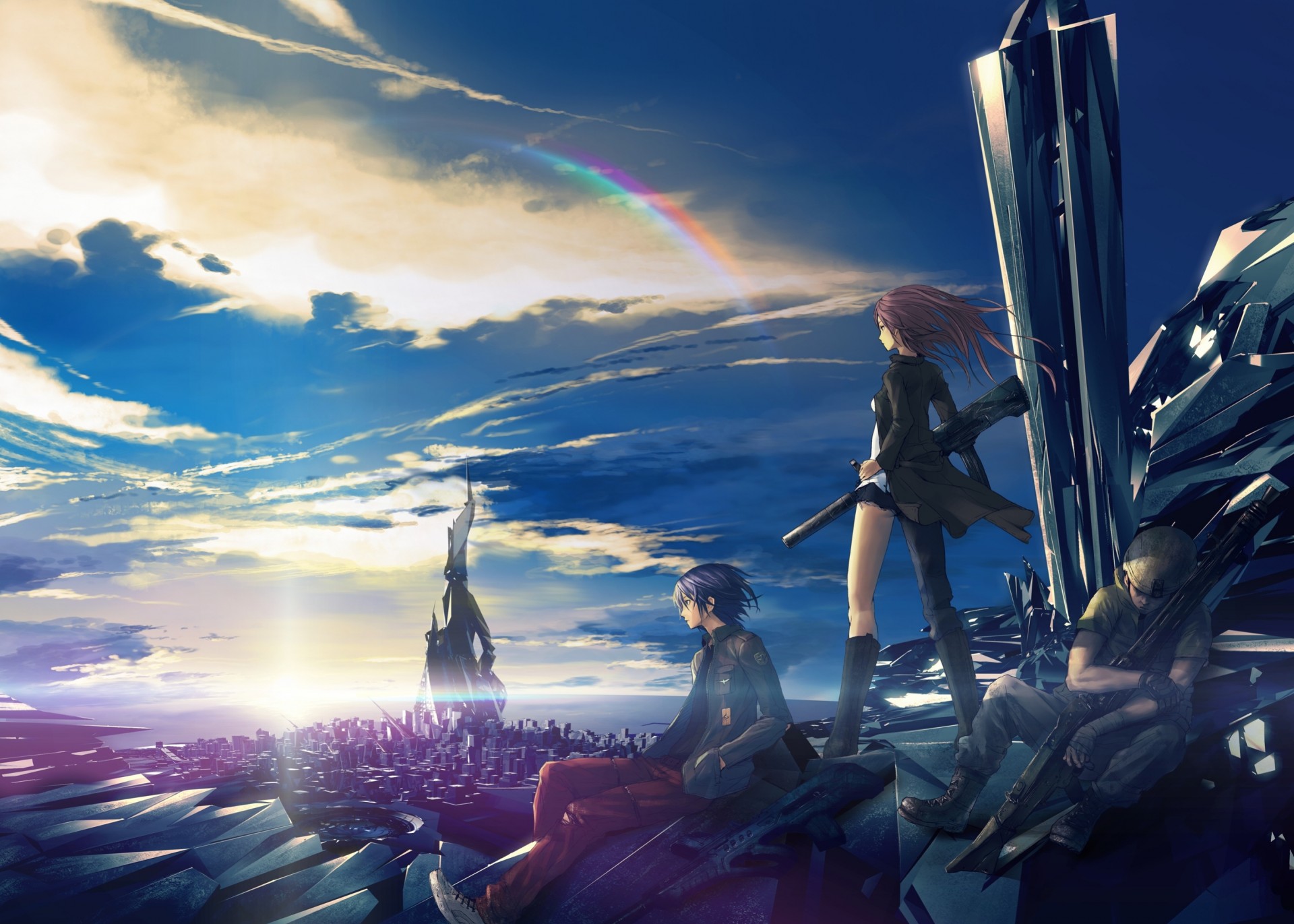 Imagen de una fortaleza voladora en el fondo de un tiroteo