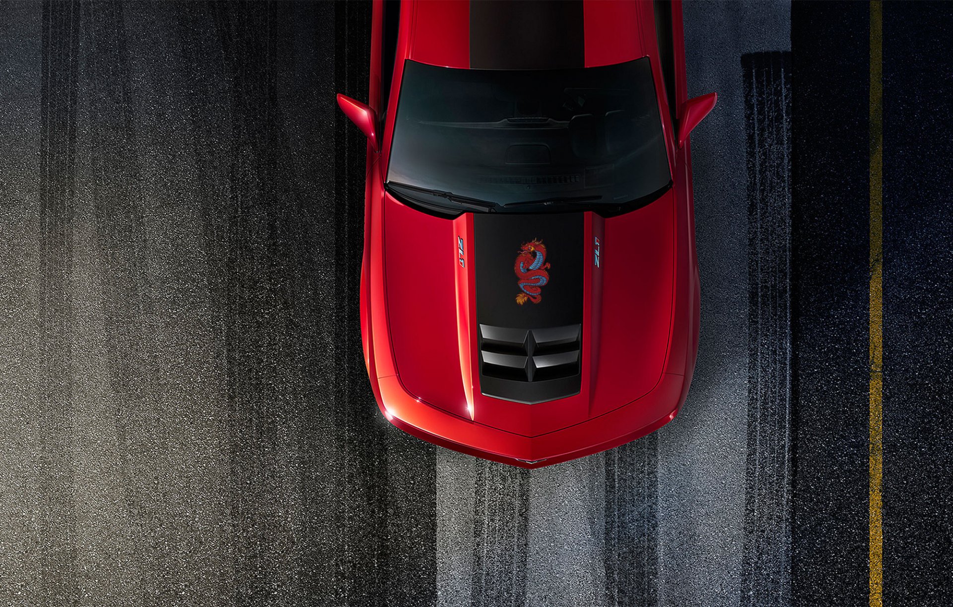 Chevrolet Camaro rojo fotografiado desde arriba